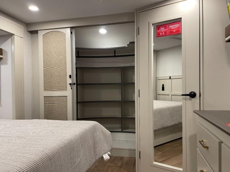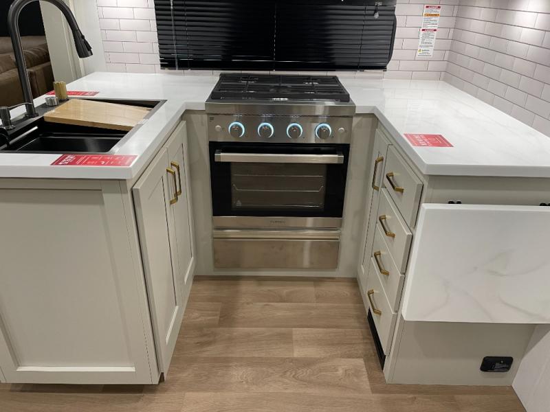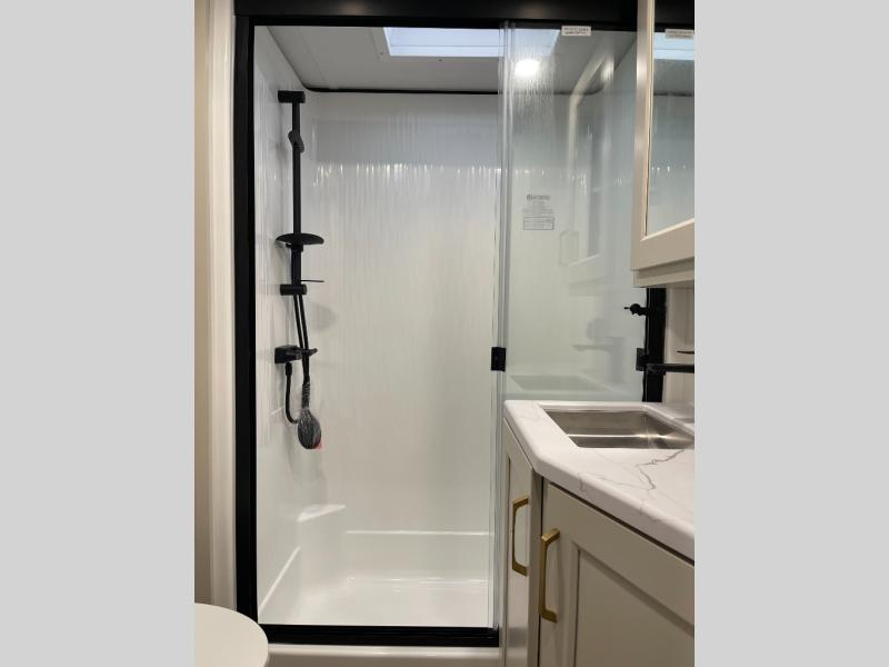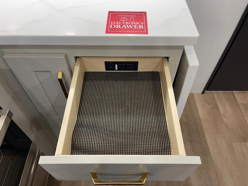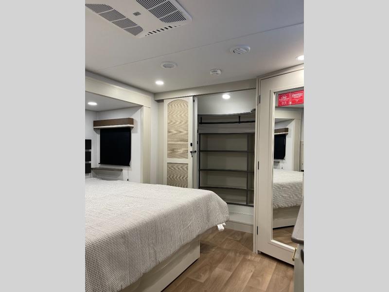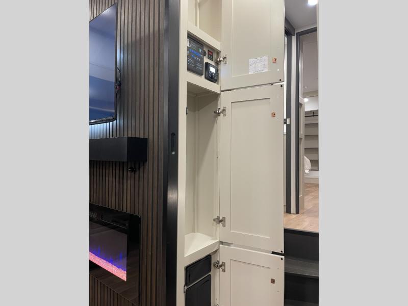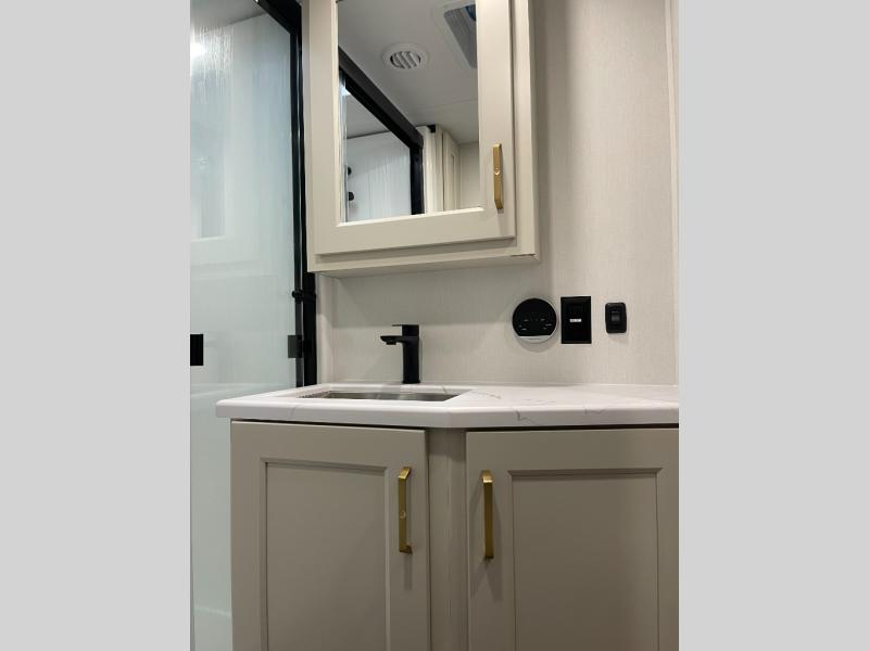 Any Grand Design Influence fifth wheel features five-sided aluminum cage construction with a walk-on roof and a fully enclosed underbelly with heated tanks and storage for all weather camping. For peace of mind, the MORryde CRE3000 Suspension system will provide safe and smooth towing, and the 101" widebody construction offers all the room you need and that is before multiple slides are fully engaged. You will appreciate the Keyed-Alike locks, slam-latch baggage doors with magnetic door catches, exterior security light, and SolidStep entry steps. On the inside, Congoleum flooring, premium roller shades for privacy, a hallway handrail for safety, and nightstands with USB ports to keep all of your electronics fully charged. You will also love the on demand tankless water heater when showering, plus the added heat and ambiance from an electric fireplace, and so much more!