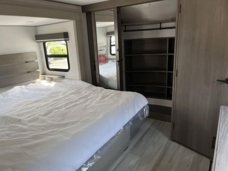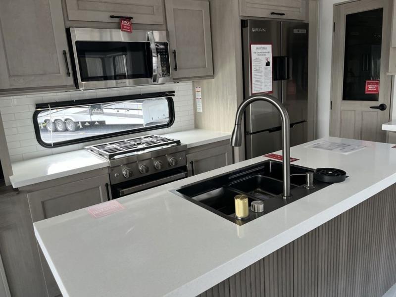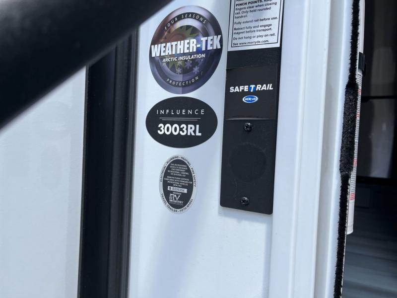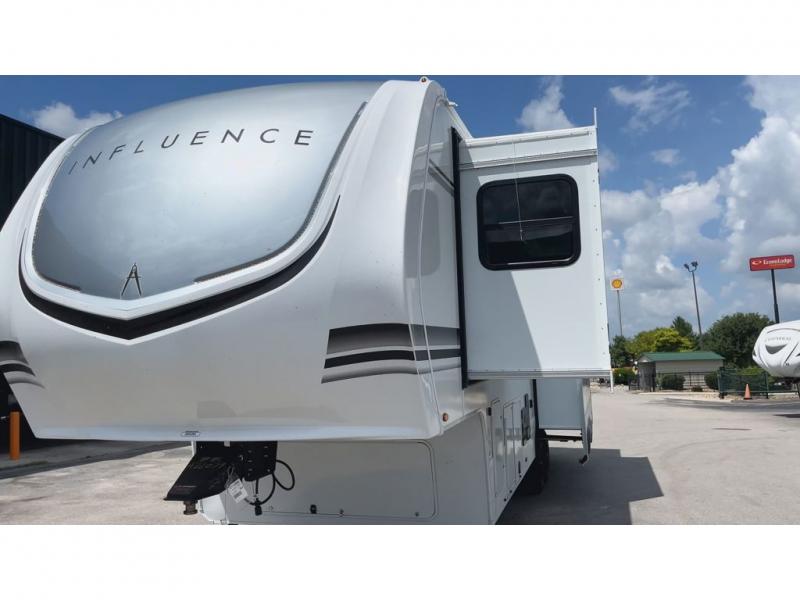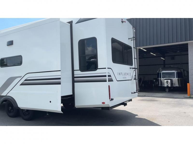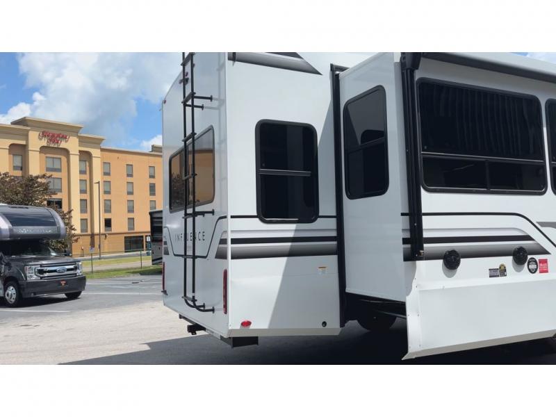 Any Grand Design Influence fifth wheel features five-sided aluminum cage construction with a walk-on roof and a fully enclosed underbelly with heated tanks and storage for all weather camping. For peace of mind, the MORryde CRE3000 Suspension system will provide safe and smooth towing, and the 101" widebody construction offers all the room you need and that is before multiple slides are fully engaged. You will appreciate the Keyed-Alike locks, slam-latch baggage doors with magnetic door catches, exterior security light, and SolidStep entry steps. On the inside, Congoleum flooring, premium roller shades for privacy, a hallway handrail for safety, and nightstands with USB ports to keep all of your electronics fully charged. You will also love the On Demand tankless water heater when showering, plus the added heat and ambiance from an electric fireplace, and so much more!
