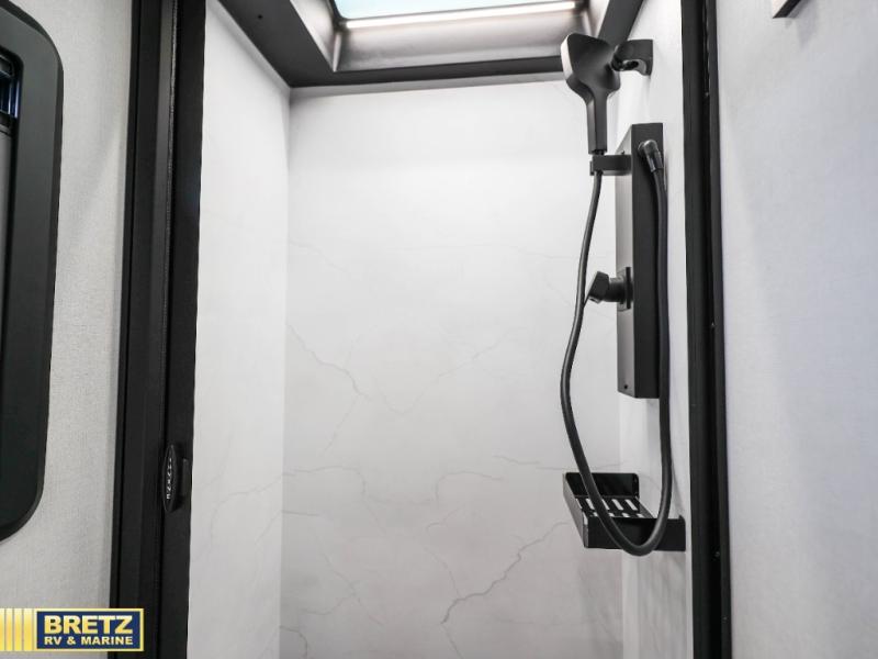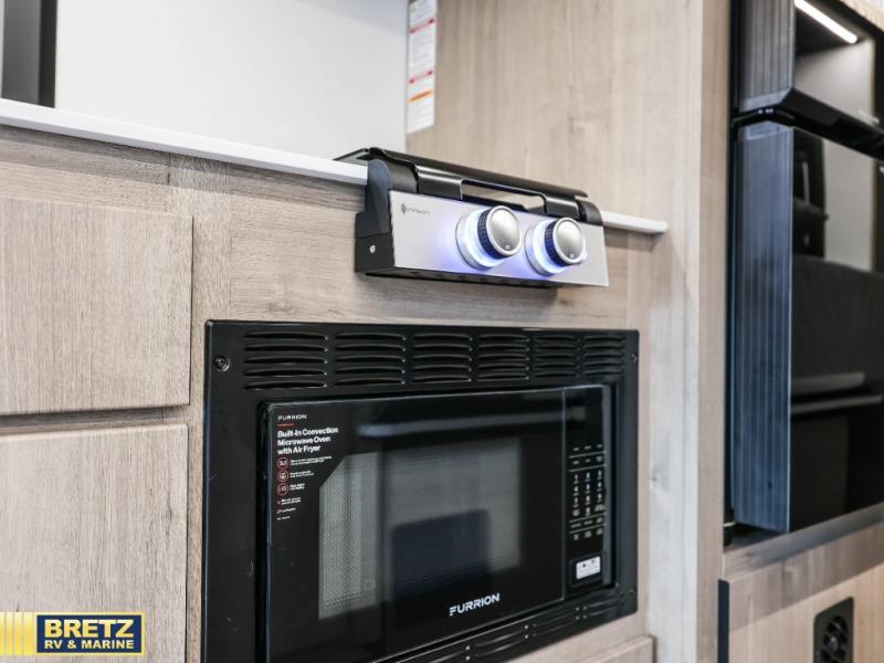 Head to your local state park or across the states in this spacious coach. Once you arrive at your destination, you can prepare a meal with the full kitchen amenities, including a cooktop, microwave oven, and a refrigerator. The power theater seating provides a place to relax, or you can choose the optional booth dinette if you need additional sleeping space. A full bath will let you clean up after a day outdoors, and the 70" x 80" king bed within the full-wall slide is sure to bring comfort. This model also includes a pantry beside the theater seats for snacks and a bedroom wardrobe to keep your clothes wrinkle-free!