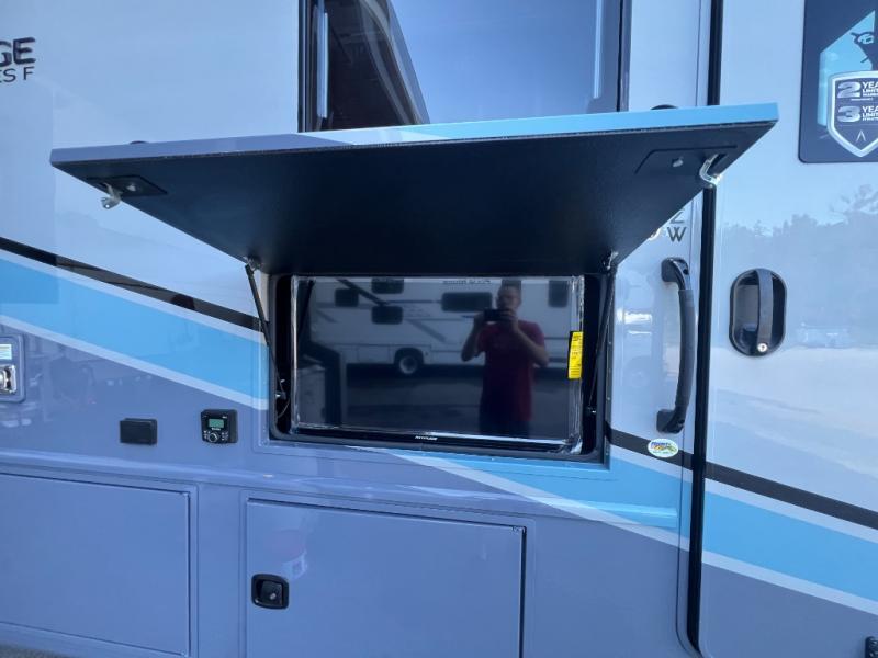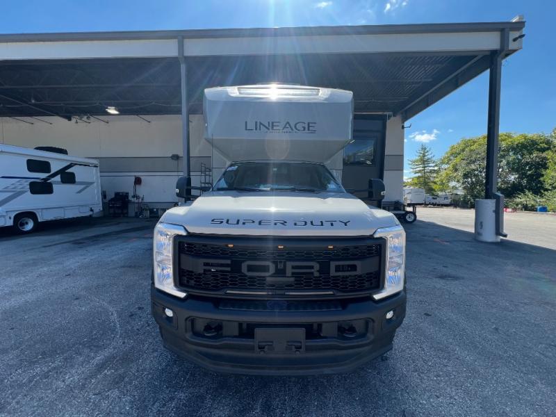 The capable Lineage Series F Super C diesel motorhome by Grand Design is your ticket to adventure! There is a Fox Factory Suspension Package for optimal handling, and you can go off the beaten path with the 6.7L power stroke diesel 4x4 chassis. This coach sits on the Ford F-600 super duty platform, and features a MorRyde tubular steel frame for added strength and durability. You'll find many at-home comforts inside, including comfortable seating and sleeping spaces, full bath and kitchen amenities, and plenty of storage for your personal belongings and camp gear!