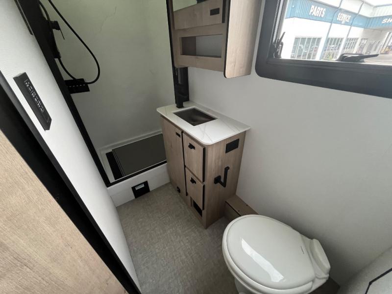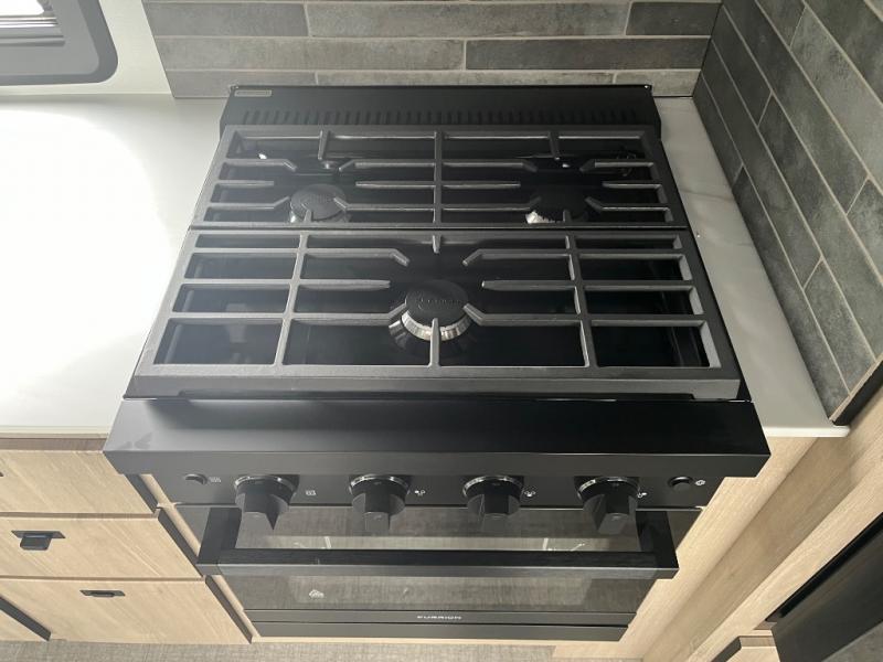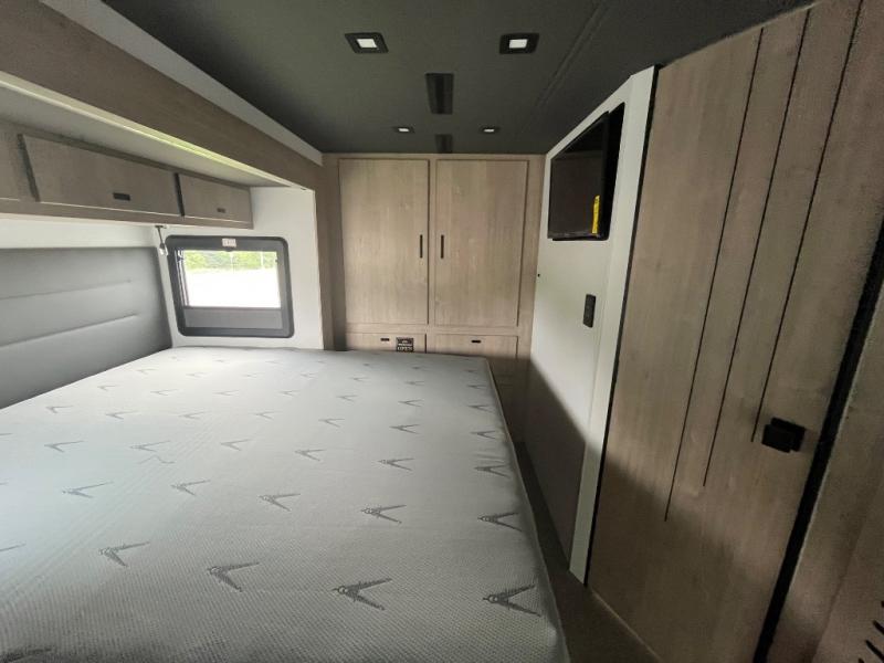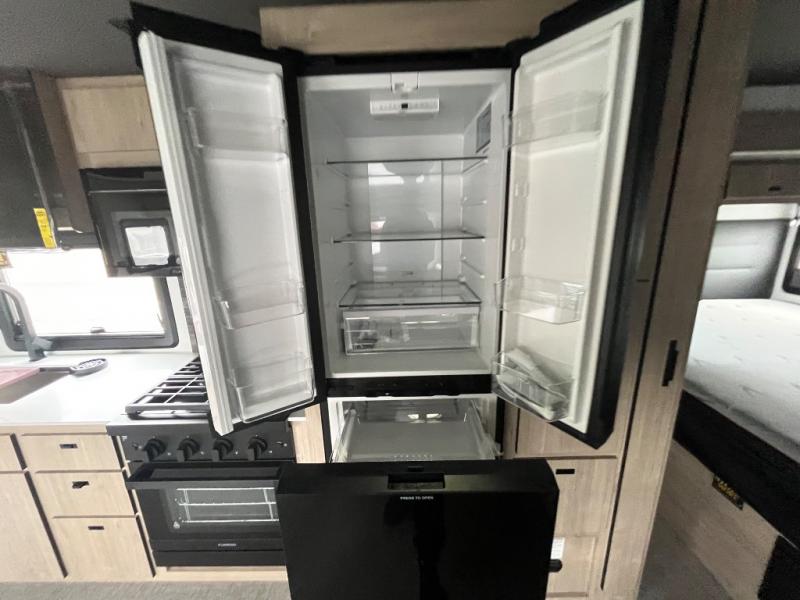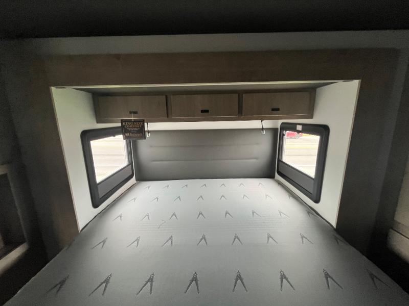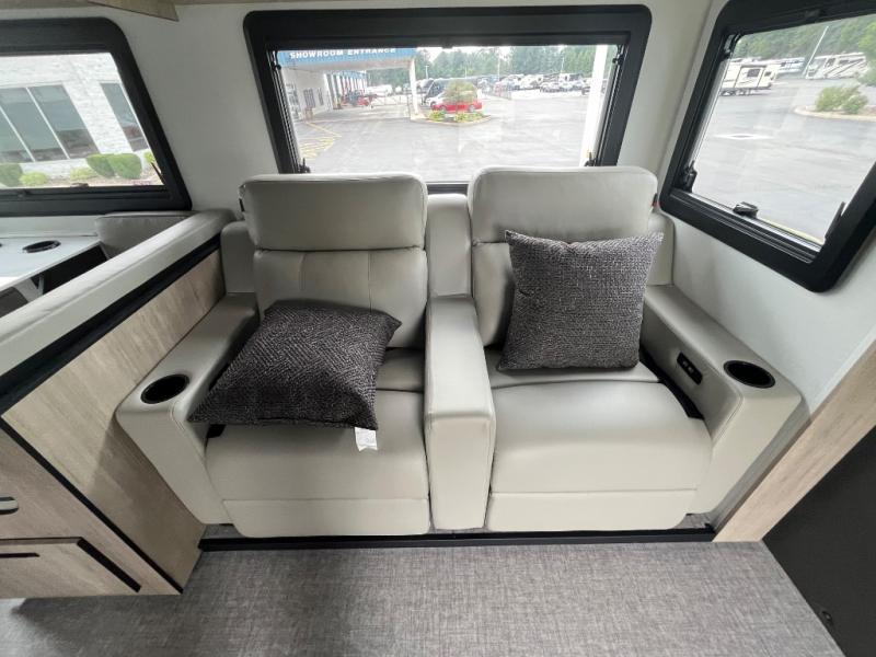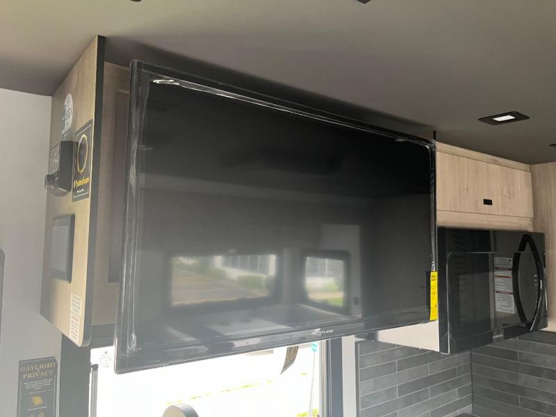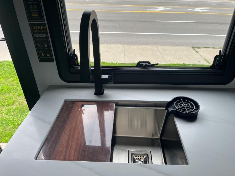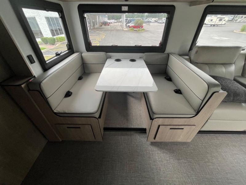 You can be sure to enjoy the journey and the stay in this coach! Once you stop for the day, you can make lunch with the kitchen appliances, then dine at the booth dinette within the large slide out. There is also power theater seating here across from a TV for easy viewing. A 10 cu. ft. refrigerator and pantry will let you keep food stocked, and the closet with washer and dryer prep gives you the option to add these appliances. The 70" x 80" king bed slide is sure to provide a great night's rest, and there is a wardrobe to keep your things tidy. And of course, a full rear corner bath onboard makes staying fresh easier than ever!