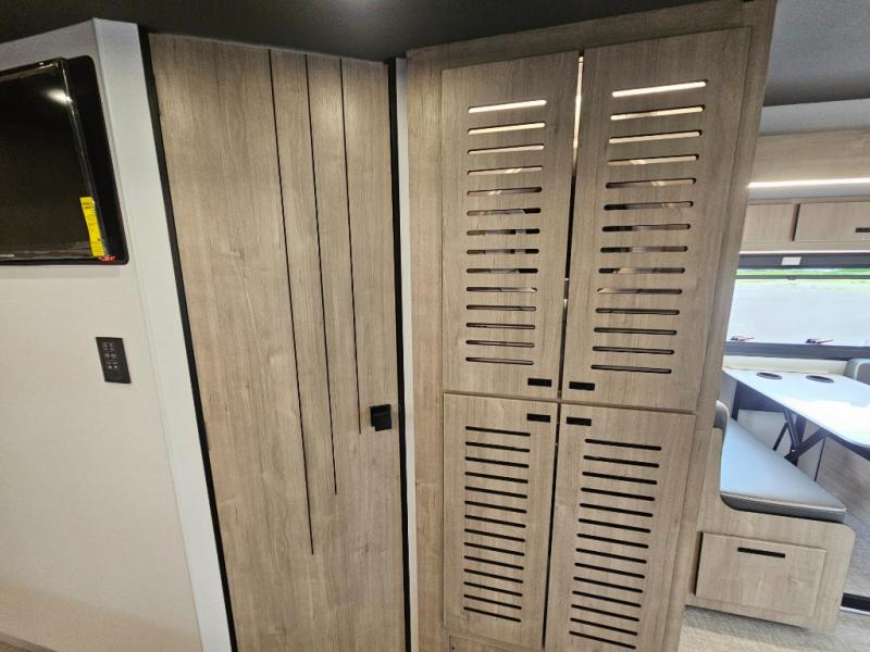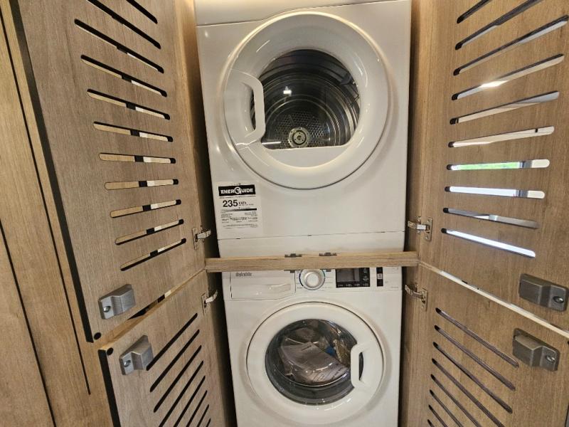 You can be sure to enjoy the journey and the stay in this coach! Once you stop for the day, you can make lunch with the kitchen appliances, then dine at the booth dinette within the large slide out. There is also power theater seating here across from a TV for easy viewing. A 10 cu. ft. refrigerator and pantry will let you keep food stocked, and the closet with washer and dryer prep gives you the option to add these appliances. The 70" x 80" king bed slide is sure to provide a great night's rest, and there is a wardrobe to keep your things tidy. And of course, a full rear corner bath onboard makes staying fresh easier than ever!