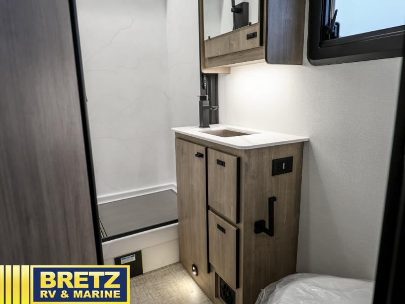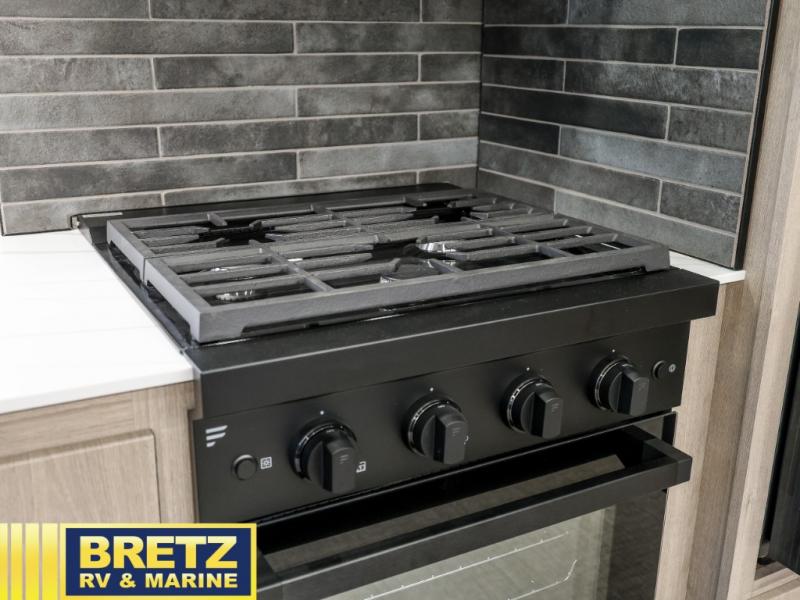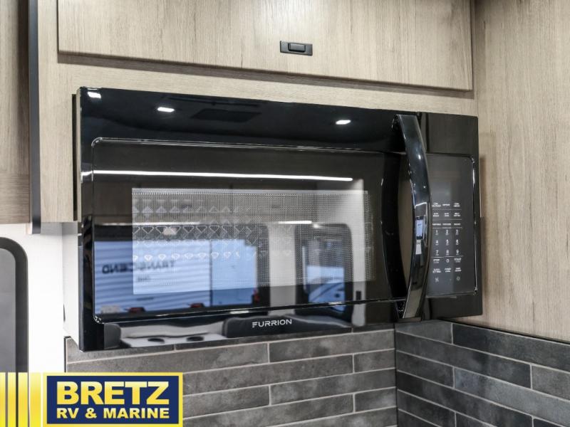 You can be sure to enjoy the journey and the stay in this coach! Once you stop for the day, you can make lunch with the kitchen appliances, then dine at the booth dinette within the large slide out. There is also power theater seating here across from a TV for easy viewing. A 10 cu. ft. 12V refrigerator and pantry will let you keep food stocked, and the closet with washer and dryer prep gives you the option to add these appliances. The 70" x 80" king bed slide is sure to provide a great night's rest, and there is a wardrobe to keep your things tidy. And of course, a full rear corner bath onboard makes staying fresh easier than ever!
