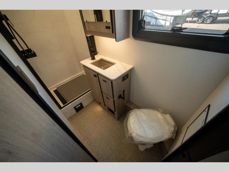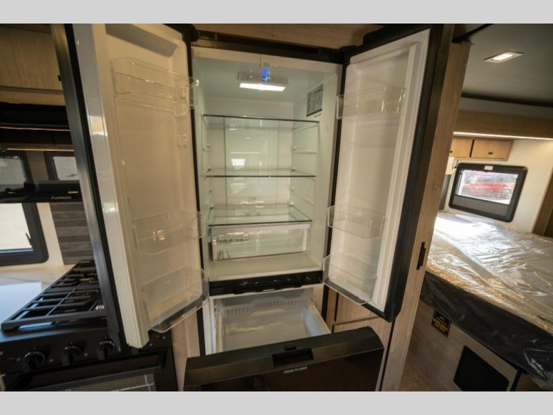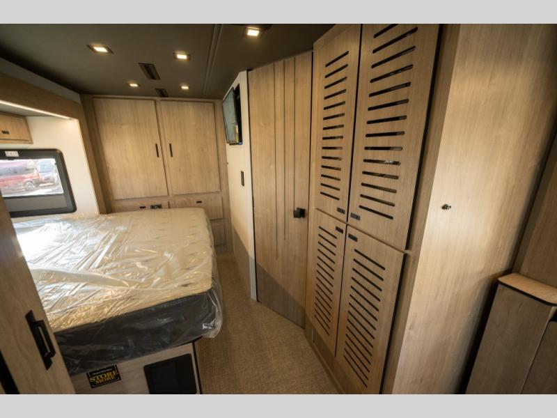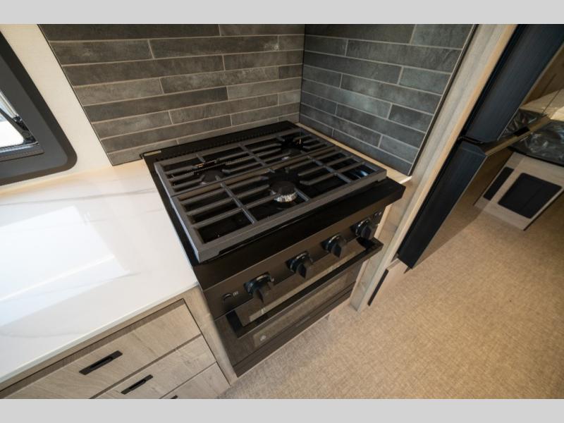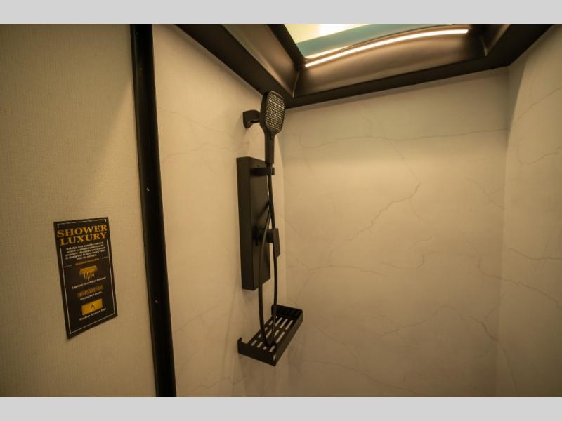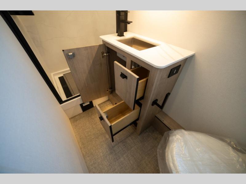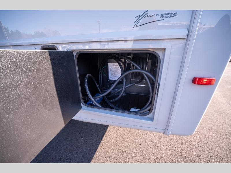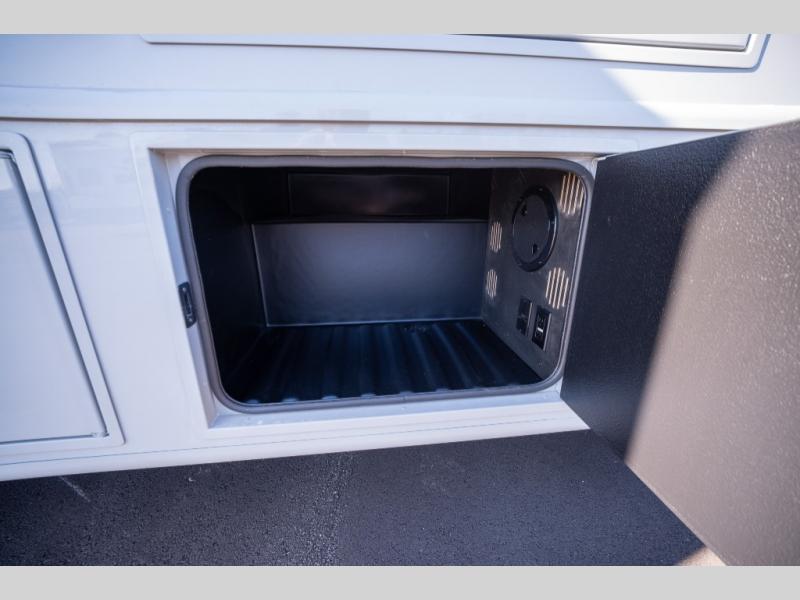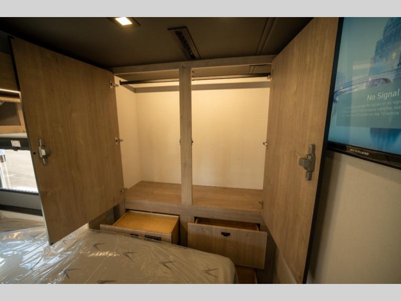 You can be sure to enjoy the journey and the stay in this coach! Once you stop for the day, you can make lunch with the kitchen appliances, then dine at the booth dinette within the large slide out. There is also power theater seating here across from a TV for easy viewing. A 10 cu. ft. 12V refrigerator and pantry will let you keep food stocked, and the closet with washer and dryer prep gives you the option to add these appliances. The 70" x 80" king bed slide is sure to provide a great night's rest, and there is a wardrobe to keep your things tidy. And of course, a full rear corner bath onboard makes staying fresh easier than ever!