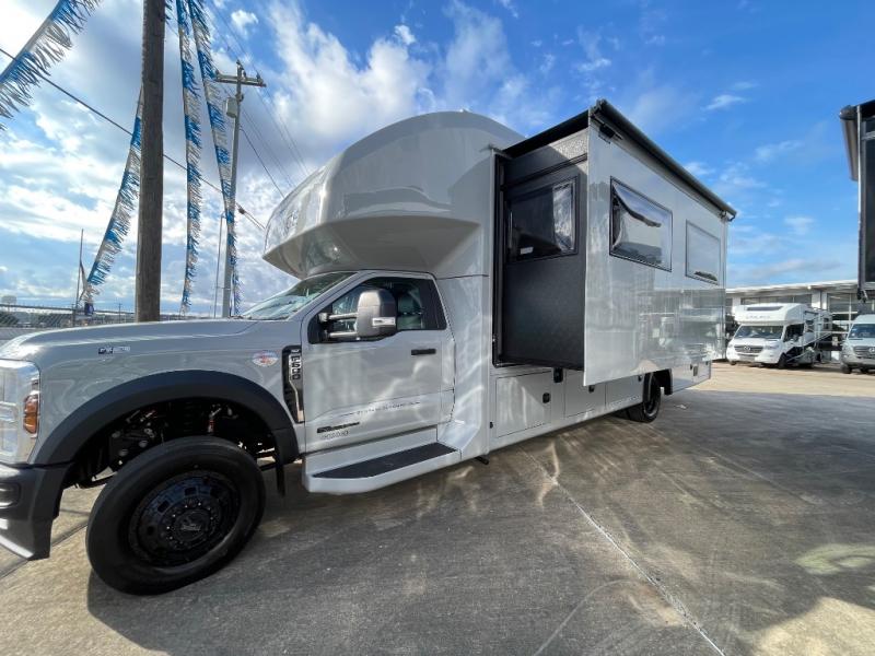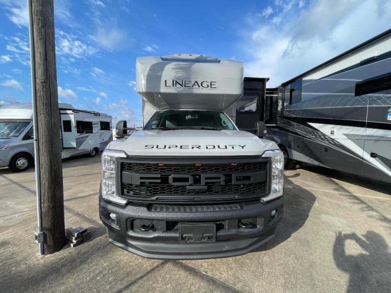 The capable Lineage Series F Super C diesel motorhome by Grand Design is your ticket to adventure! There is a Fox Factory Suspension Package for optimal handling, and you can go off the beaten path with the 6.7L power stroke diesel 4x4 chassis. This coach sits on the Ford F-600 super duty platform, and features a MorRyde tubular steel frame for added strength and durability. You'll find many at-home comforts inside, including comfortable seating and sleeping spaces, full bath and kitchen amenities, and plenty of storage for your personal belongings and camp gear!