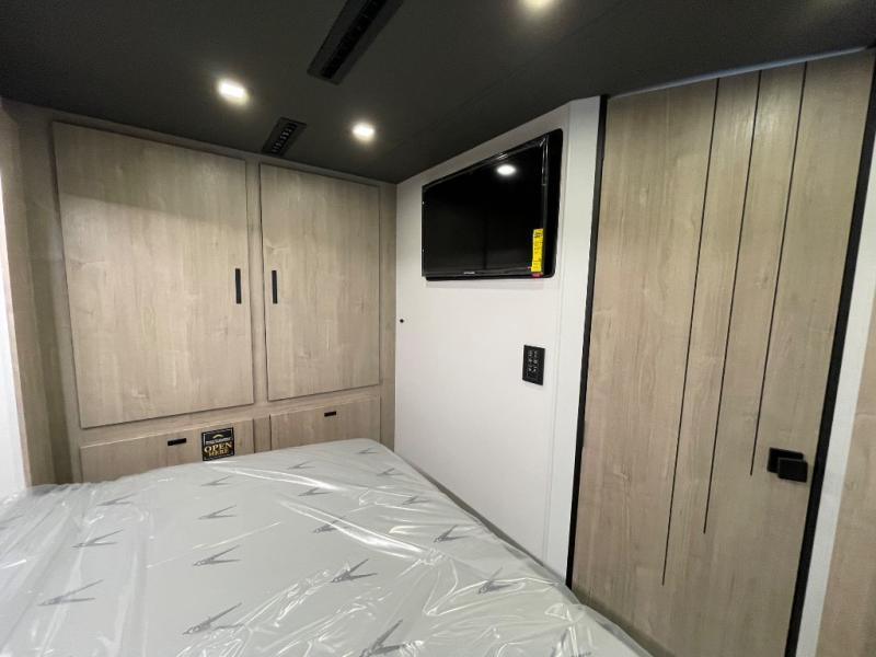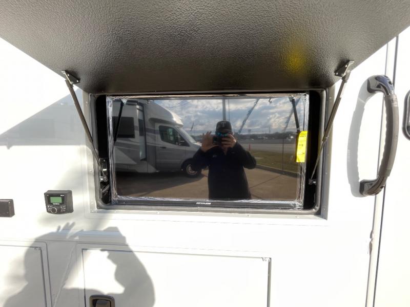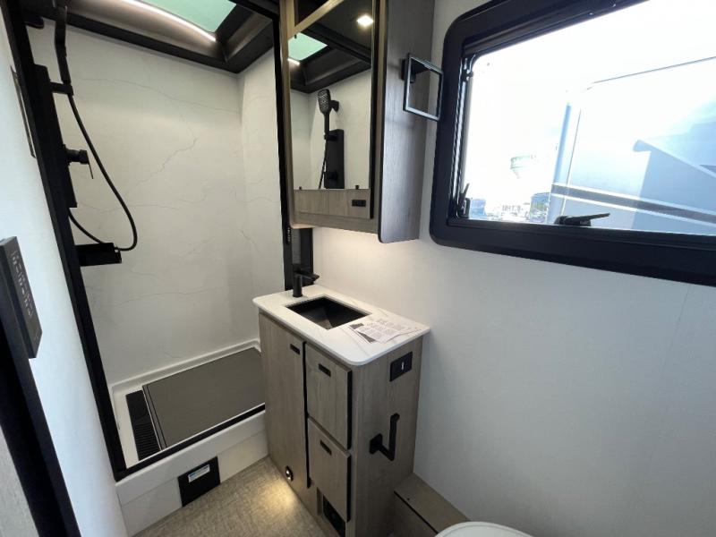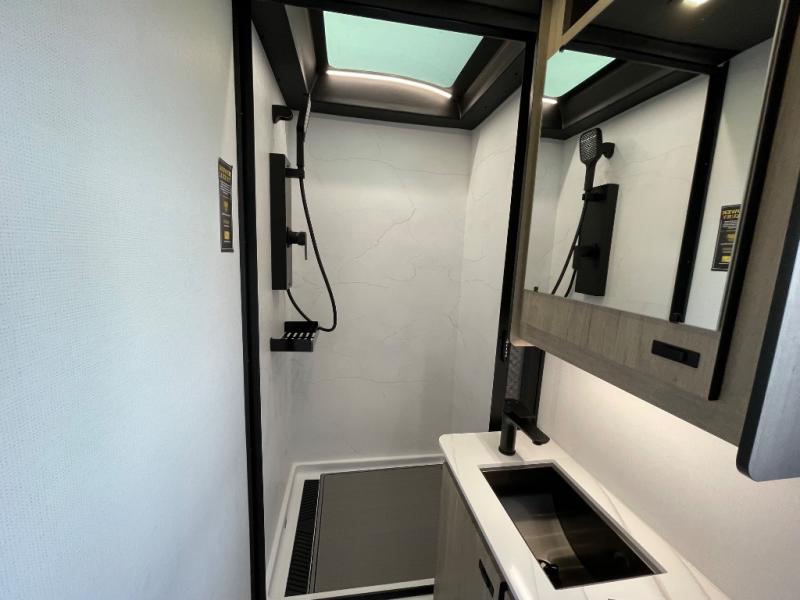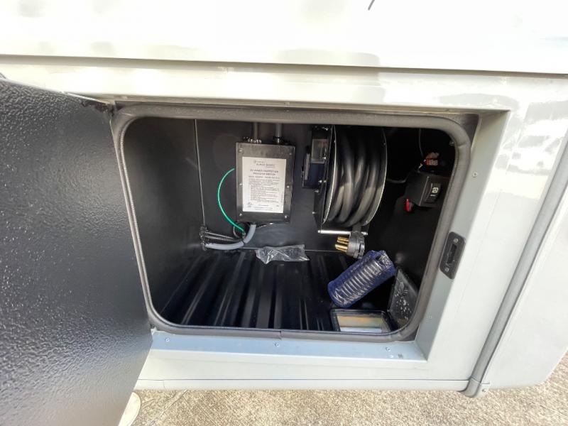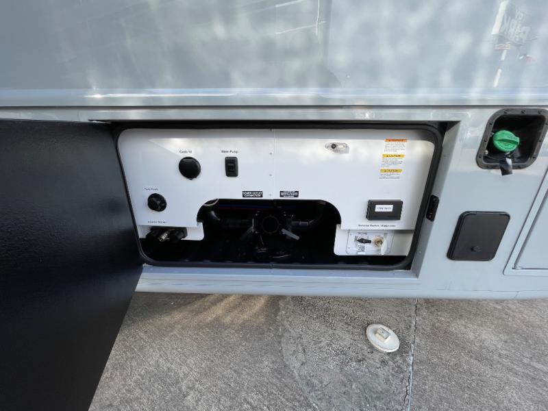You can be sure to enjoy the journey and the stay in this coach! Once you stop for the day, you can make lunch with the kitchen appliances, then dine at the booth dinette within the large slide out. There is also power theater seating here across from a TV for easy viewing. A 10 cu. ft. 12V refrigerator and pantry will let you keep food stocked, and the closet with washer and dryer prep gives you the option to add these appliances. The 70" x 80" king bed slide is sure to provide a great night's rest, and there is a wardrobe to keep your things tidy. And of course, a full rear corner bath onboard makes staying fresh easier than ever!