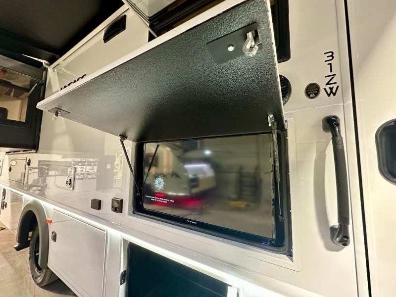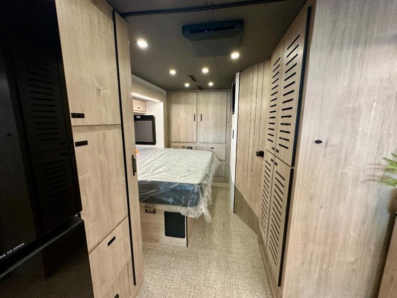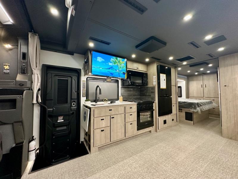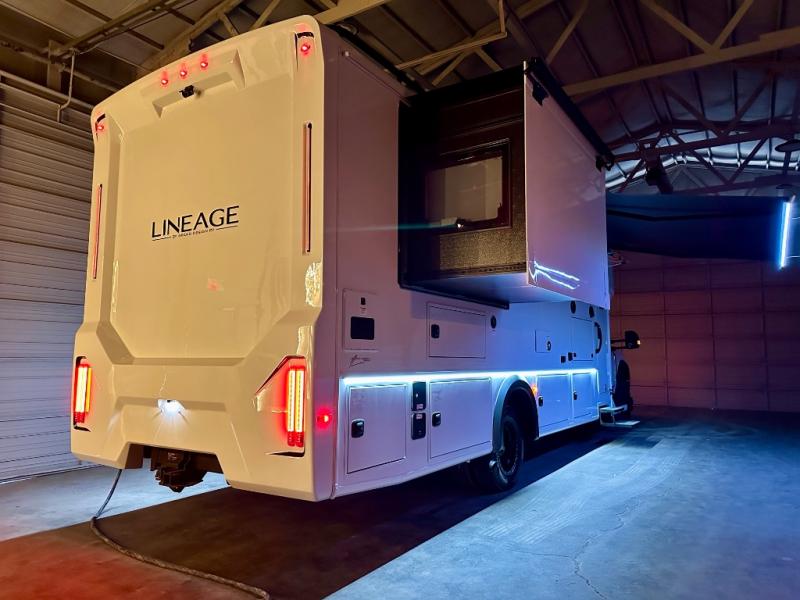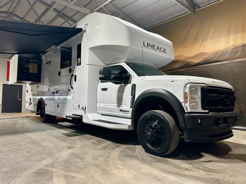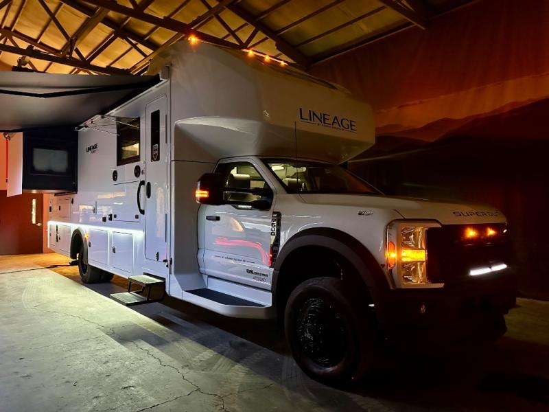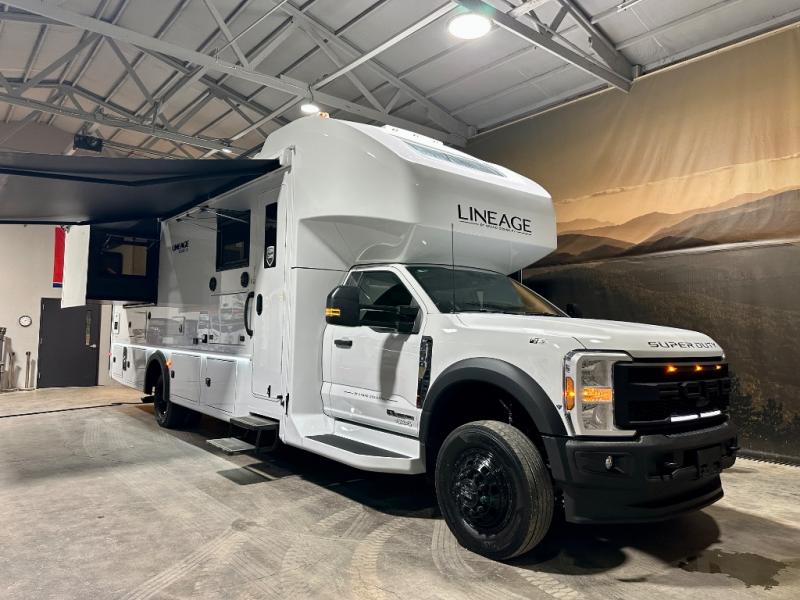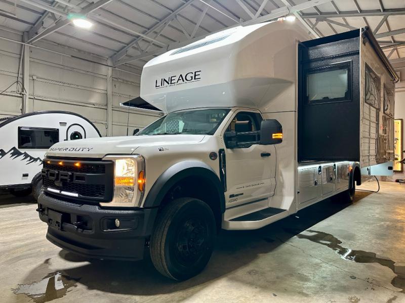 The capable Lineage Series F Super C diesel motorhome by Grand Design is your ticket to adventure! There is a Fox Factory Suspension Package for optimal handling, and you can go off the beaten path with the 6.7L power stroke diesel 4x4 chassis. This coach sits on the Ford F-600 super duty platform, and features a MorRyde tubular steel frame for added strength and durability. You'll find many at-home comforts inside, including comfortable seating and sleeping spaces, full bath and kitchen amenities, and plenty of storage for your personal belongings and camp gear!