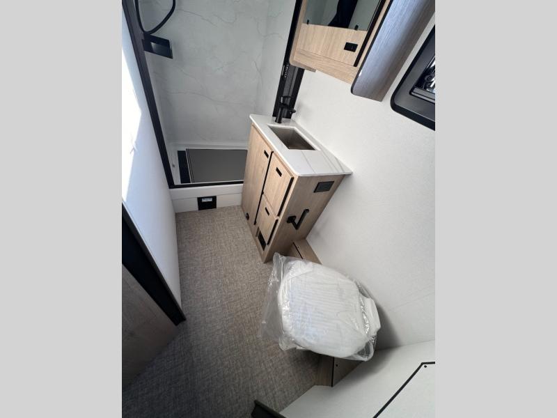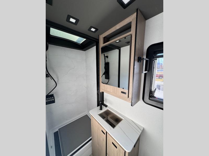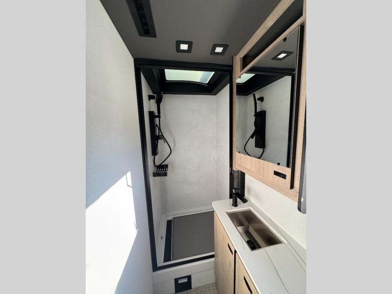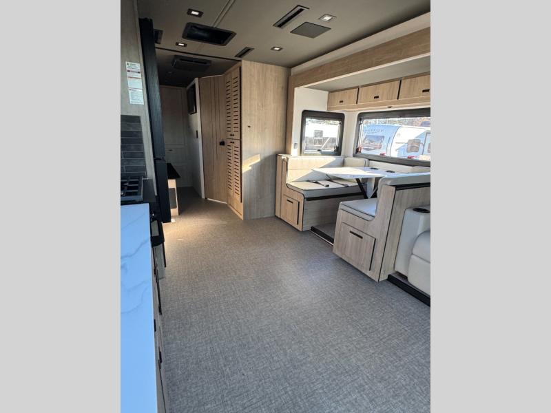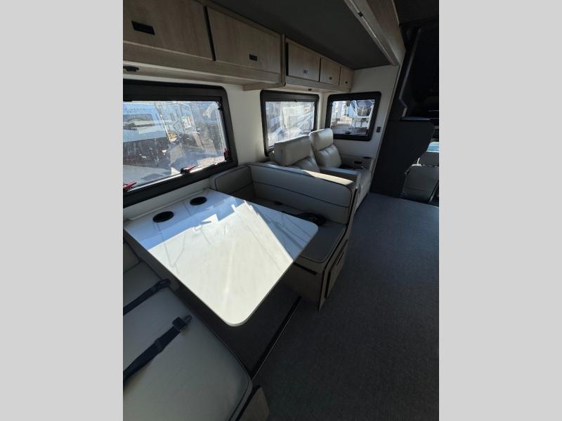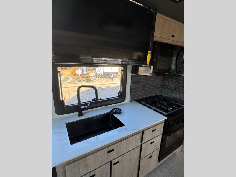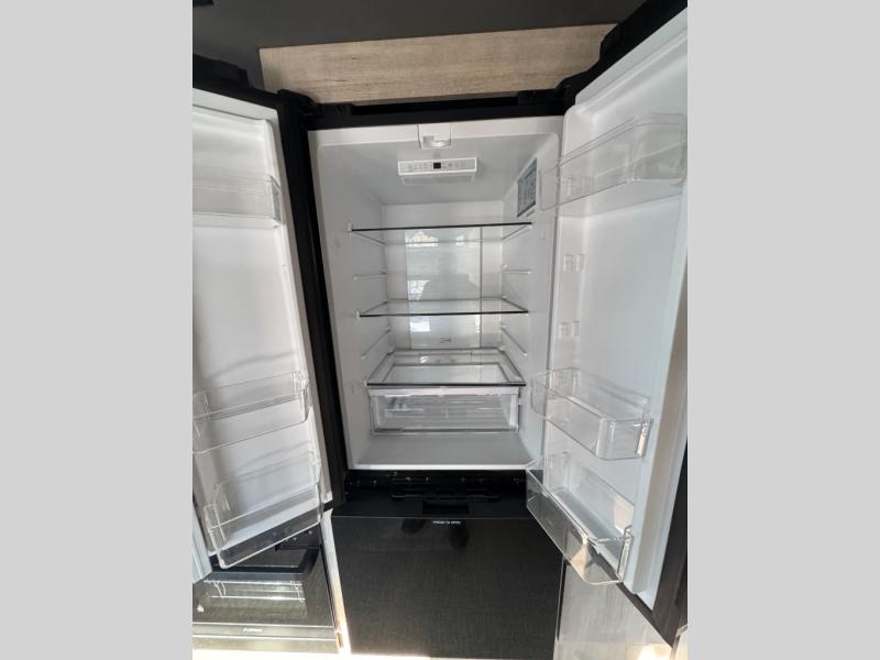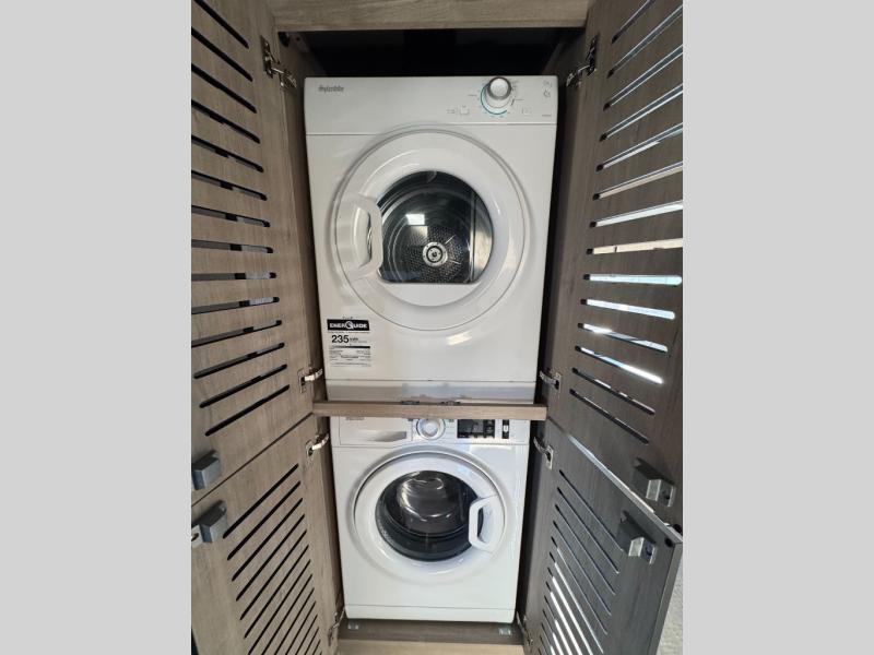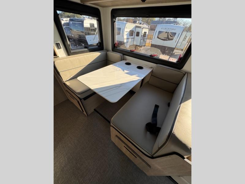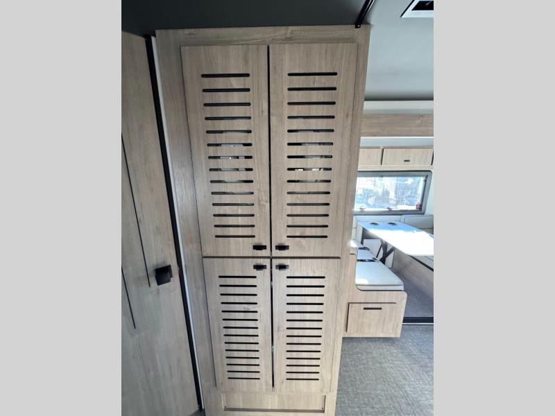 You can be sure to enjoy the journey and the stay in this coach! Once you stop for the day, you can make lunch with the kitchen appliances, then dine at the booth dinette within the large slide out. There is also power theater seating here across from a TV for easy viewing. A 10 cu. ft. 12V refrigerator and pantry will let you keep food stocked, and the closet with washer and dryer prep gives you the option to add these appliances. The 70" x 80" king bed slide is sure to provide a great night's rest, and there is a wardrobe to keep your things tidy. And of course, a full rear corner bath onboard makes staying fresh easier than ever!