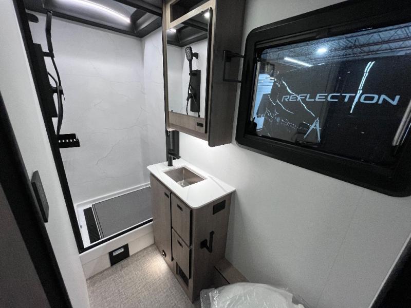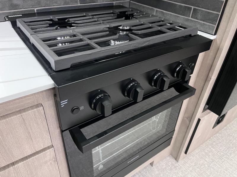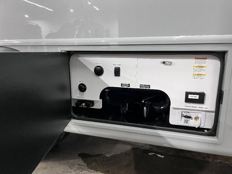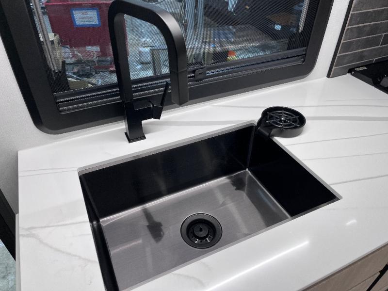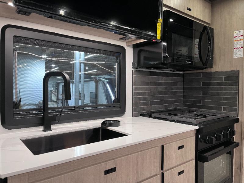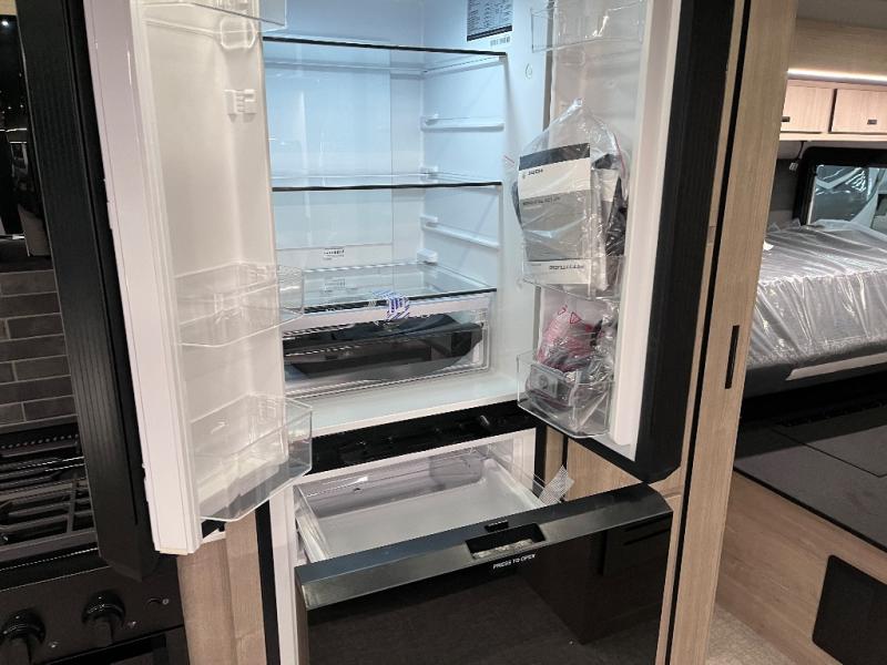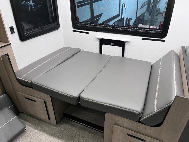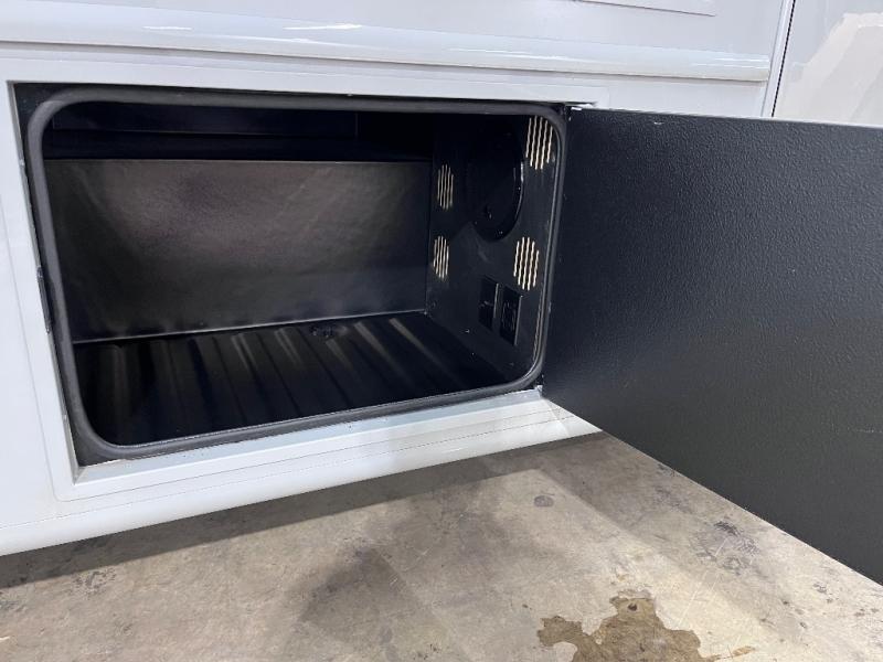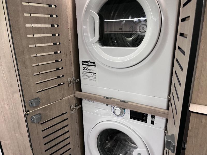 You can be sure to enjoy the journey and the stay in this coach! Once you stop for the day, you can make lunch with the kitchen appliances, then dine at the booth dinette within the large slide out. There is also power theater seating here across from a TV for easy viewing. A 10 cu. ft. 12V refrigerator and pantry will let you keep food stocked, and the closet with washer and dryer prep gives you the option to add these appliances. The 70" x 80" king bed slide is sure to provide a great night's rest, and there is a wardrobe to keep your things tidy. And of course, a full rear corner bath onboard makes staying fresh easier than ever!