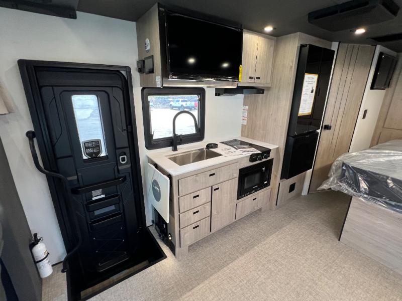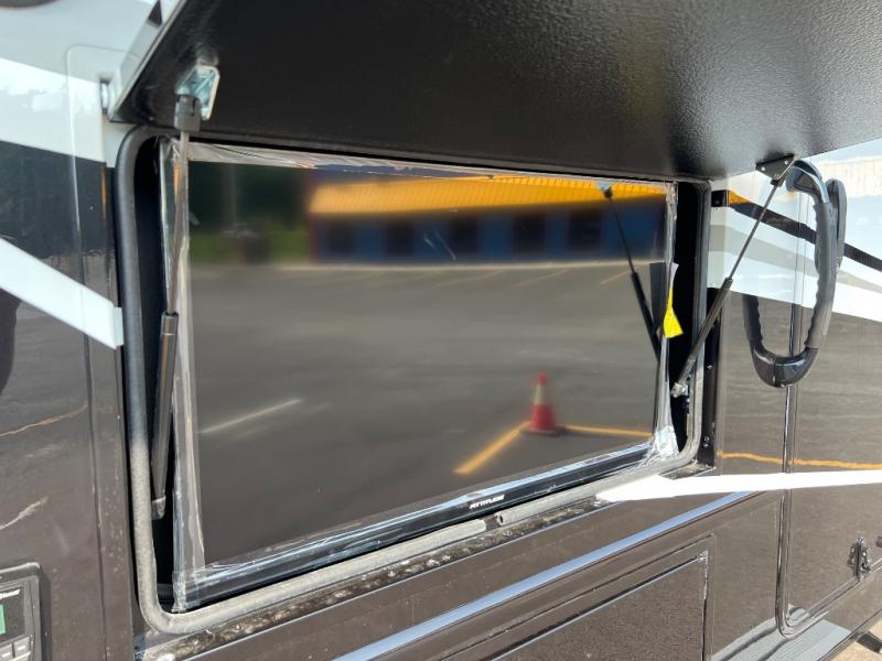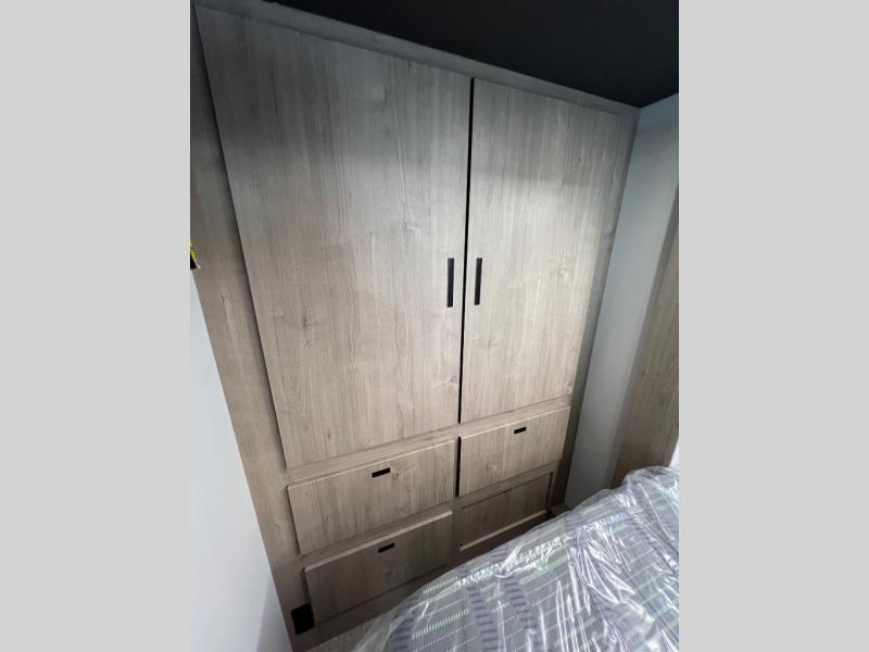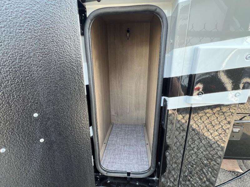 Head to your local state park or across the states in this spacious coach. Once you arrive at your destination, you can prepare a meal with the full kitchen amenities, including a cooktop, microwave oven, and a refrigerator. The power theater seating provides a place to relax, or you can choose the optional booth dinette if you need additional sleeping space. A full bath will let you clean up after a day outdoors, and the 70" x 80" king bed within the full-wall slide is sure to bring comfort. This model also includes a pantry beside the theater seats for snacks and a bedroom wardrobe to keep your clothes wrinkle-free!
