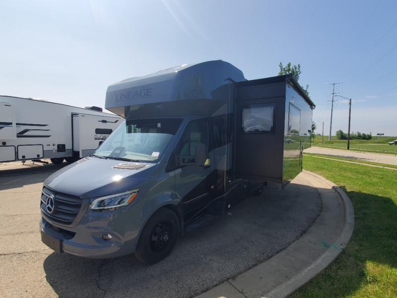 Grand Design's first motorized coach, the Lineage Series M is coming to you with luxurious features at a great value. This Class C diesel motorhome sits on a Mercedes-Benz sprinter chassis for quality and performance you can trust. True to Grand Design's foundation, the Lineage includes interior comforts, durable construction, innovative features, and attention to detail. The Series M Package includes natural teak wood grain, a Lineage Suspension Package, and more. There is also a Blackout Package with black aluminum wheels, a Chromeout Package with chrome aluminum wheels, plus additional packages to enhance your travel experience!