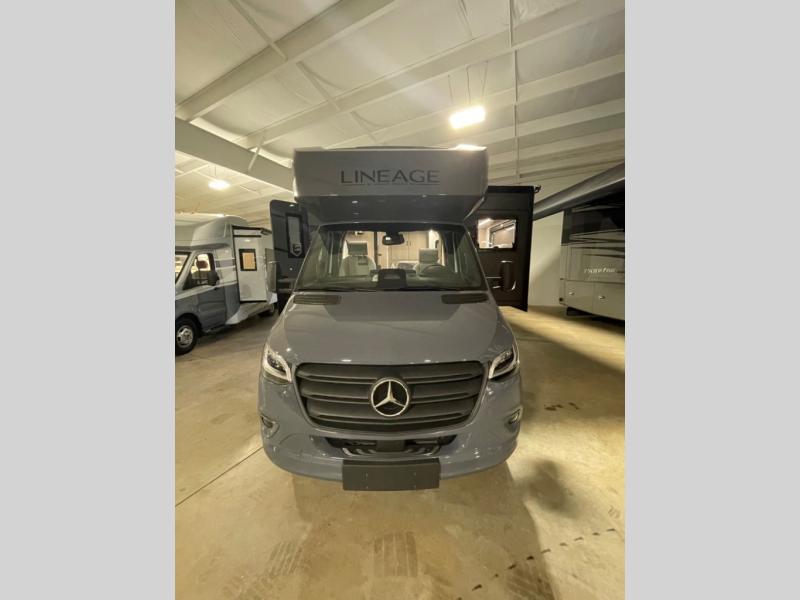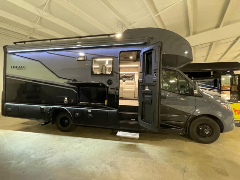 Grand Design's first motorized coach, the Lineage Series M is coming to you with luxurious features at a great value. This Class C diesel motorhome sits on a Mercedes-Benz sprinter chassis for quality and performance you can trust. True to Grand Design's foundation, the Lineage includes interior comforts, durable construction, innovative features, and attention to detail. The Series M Package includes natural teak wood grain, a Lineage Suspension Package, and more. There is also a Blackout Package with black aluminum wheels, a Chromeout Package with chrome aluminum wheels, plus additional packages to enhance your travel experience!