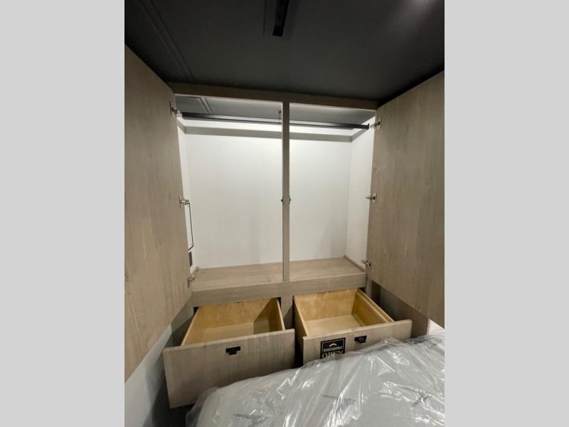 Head to your local state park or across the states in this spacious coach. Once you arrive at your destination, you can prepare a meal with the full kitchen amenities, including a cooktop, microwave oven, and a refrigerator. The power theater seating provides a place to relax, or you can choose the optional booth dinette if you need additional sleeping space. A full bath will let you clean up after a day outdoors, and the 70" x 80" king bed within the full-wall slide is sure to bring comfort. This model also includes a pantry beside the theater seats for snacks and a bedroom wardrobe to keep your clothes wrinkle-free!