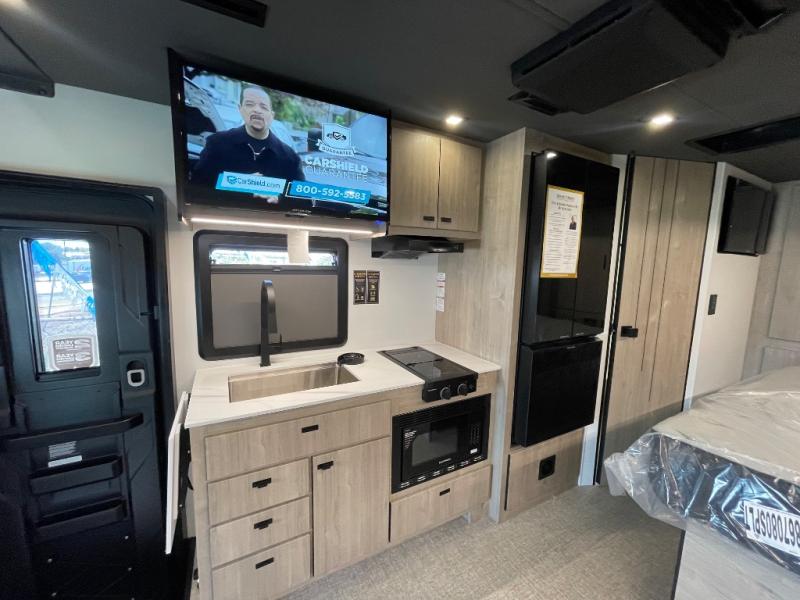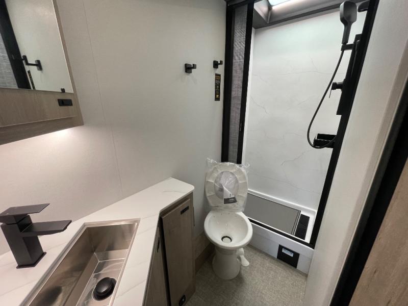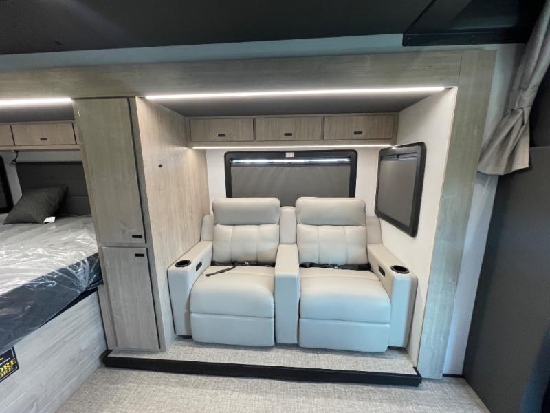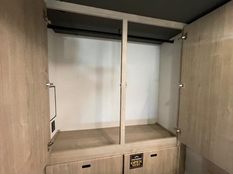 Head to your local state park or across the states in this spacious coach. Once you arrive at your destination, you can prepare a meal with the full kitchen amenities, including a cooktop, microwave oven, and a refrigerator. The power theater seating provides a place to relax, or you can choose the optional booth dinette if you need additional sleeping space. A full bath will let you clean up after a day outdoors, and the 70" x 80" king bed within the full-wall slide is sure to bring comfort. This model also includes a pantry beside the theater seats for snacks and a bedroom wardrobe to keep your clothes wrinkle-free!