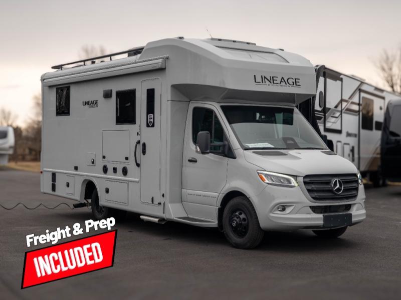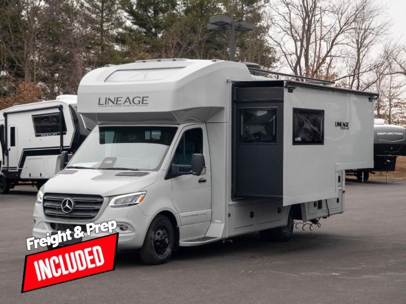 Grand Design's first motorized coach, the Lineage Series M is coming to you with luxurious features at a great value. This Class C diesel motorhome sits on a Mercedes-Benz sprinter chassis for quality and performance you can trust. True to Grand Design's foundation, the Lineage includes interior comforts, durable construction, innovative features, and attention to detail. The Series M Package includes natural teak wood grain, a Lineage Suspension Package, and more. There is also a Blackout Package with black aluminum wheels, a Chromeout Package with chrome aluminum wheels, plus additional packages to enhance your travel experience!