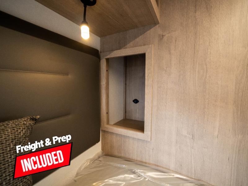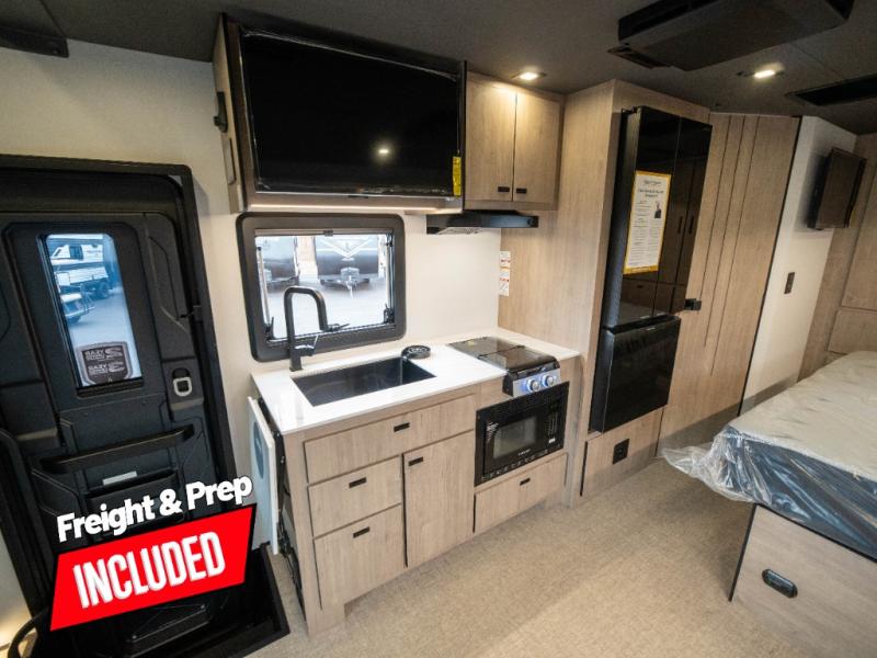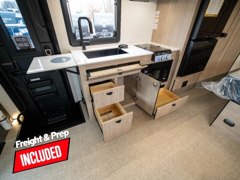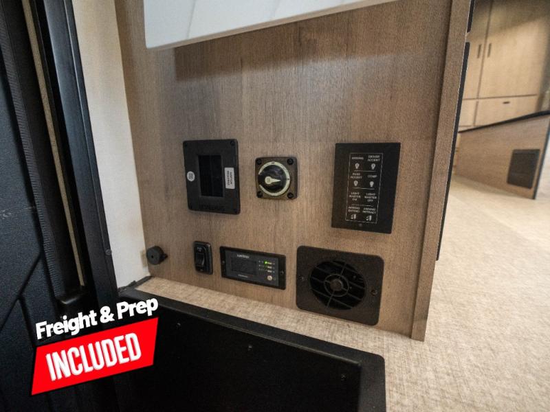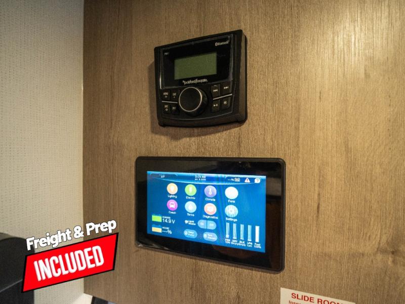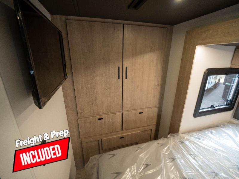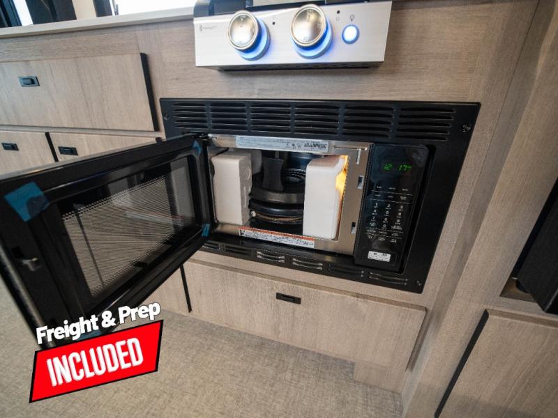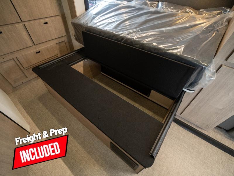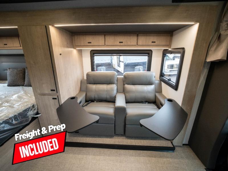 Head to your local state park or across the states in this spacious coach. Once you arrive at your destination, you can prepare a meal with the full kitchen amenities, including a cooktop, microwave oven, and a refrigerator. The power theater seating provides a place to relax, or you can choose the optional booth dinette if you need additional sleeping space. A full bath will let you clean up after a day outdoors, and the 70" x 80" king bed within the full-wall slide is sure to bring comfort. This model also includes a pantry beside the theater seats for snacks and a bedroom wardrobe to keep your clothes wrinkle-free!