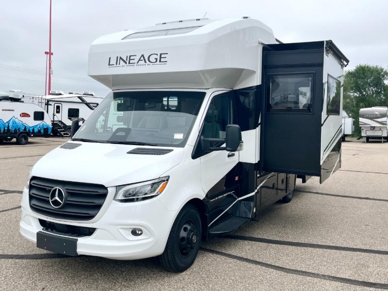 Grand Design's first motorized coach, the Lineage Series M is coming to you with luxurious features at a great value. This Class C diesel motorhome sits on a Mercedes-Benz sprinter chassis for quality and performance you can trust. True to Grand Design's foundation, the Lineage includes interior comforts, durable construction, innovative features, and attention to detail. The Series M Package includes natural teak wood grain, a Lineage Suspension Package, and more. There is also a Blackout Package with black aluminum wheels, a Chromeout Package with chrome aluminum wheels, plus additional packages to enhance your travel experience!
