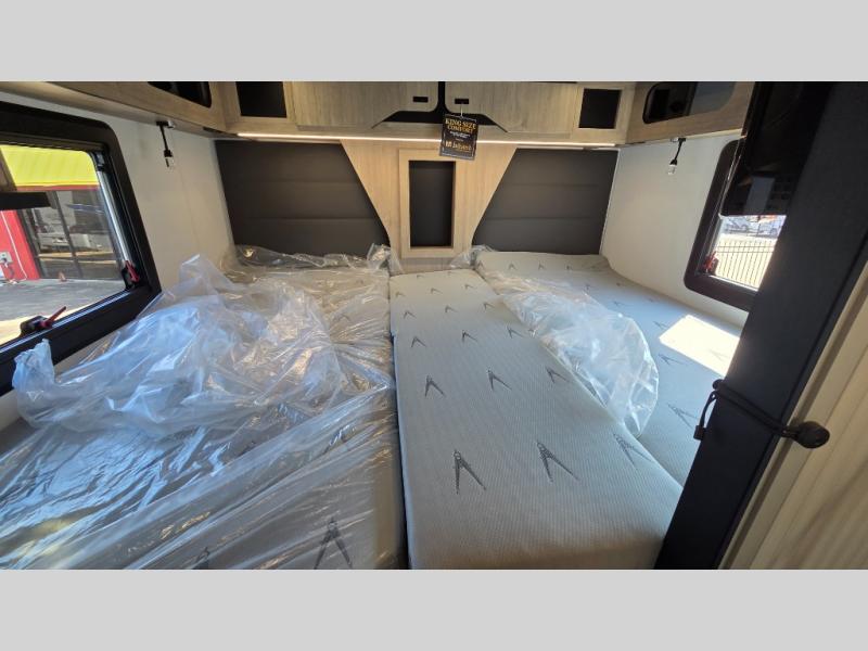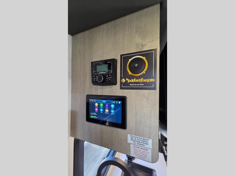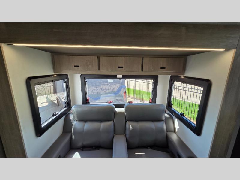 Perfect for couples or families who love to travel in style, this motorhome has everything you wish for in a coach. The rear twin beds convert to a king-sized bed, providing a spacious and comfortable sleeping area for two. The full bathroom is equipped with everything you need for a comfortable stay, providing a convenient spot to freshen up after a long day of exploring. The kitchen is equipped with a 10 cu refrigerator for ample storage, a microwave, and a two-burner cooktop for trying out any trending recipe. In addition, the pantry provides more storage for food and cookware.The 32” smart TVs in the bedroom and living room provide endless entertainment options, while the power seating ensures comfortable viewing angles. The bunk over the cab provides additional sleeping space for kids or adults, and the exterior TV offers an ideal spot to enjoy your favorite shows or sports teams while outdoors.