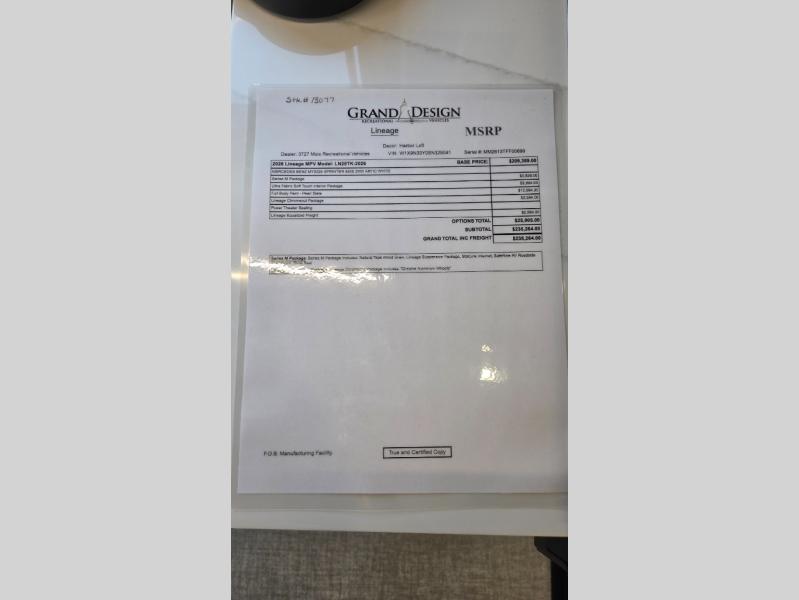 Grand Design's first motorized coach, the Lineage Series M is coming to you with luxurious features at a great value. This Class C diesel motorhome sits on a Mercedes-Benz sprinter chassis for quality and performance you can trust. True to Grand Design's foundation, the Lineage includes interior comforts, durable construction, innovative features, and attention to detail. The Series M Package includes natural teak wood grain, a Lineage Suspension Package, and more. There is also a Blackout Package with black aluminum wheels, a Chromeout Package with chrome aluminum wheels, plus additional packages to enhance your travel experience!