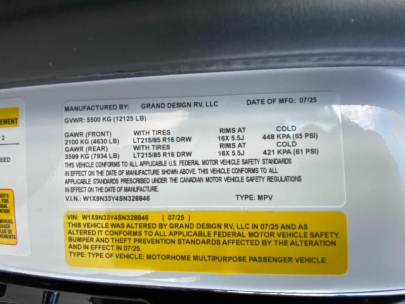 New 2026 Grand Design Lineage Series M 25TK Motor Home Class C - Diesel