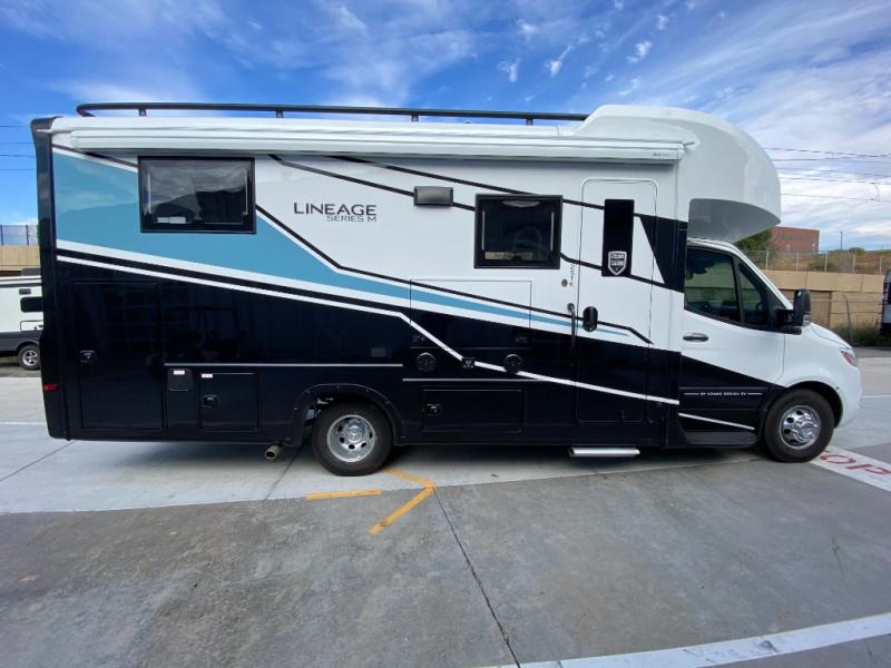 Grand Design's first motorized coach, the Lineage Series M is coming to you with luxurious features at a great value. This Class C diesel motorhome sits on a Mercedes-Benz sprinter chassis for quality and performance you can trust. True to Grand Design's foundation, the Lineage includes interior comforts, durable construction, innovative features, and attention to detail. The Series M Package includes natural teak wood grain, a Lineage Suspension Package, and more. There is also a Blackout Package with black aluminum wheels, a Chromeout Package with chrome aluminum wheels, plus additional packages to enhance your travel experience!