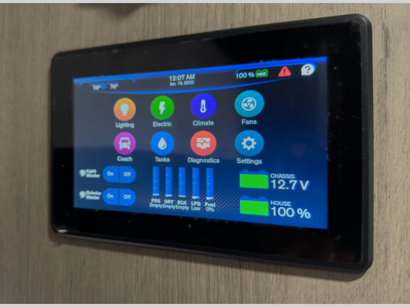 Smart RV Tech: Integrated smart TVs, satellite internet, and energy-efficient 12V systems make this coach ready for the digital age.