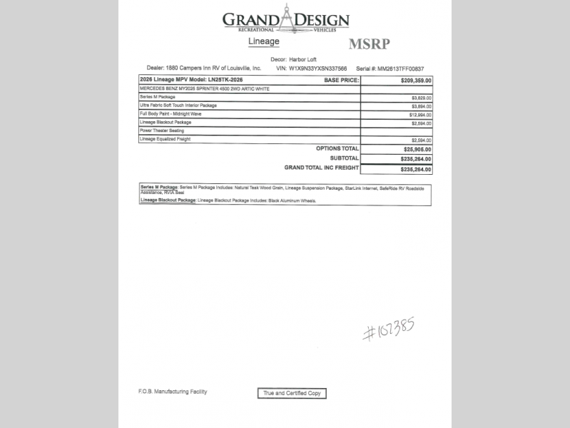 Welcome to the next evolution in Class C motorhomes. The 2026 Grand Design Lineage M-25TK delivers the ultimate blend of luxury, innovation, and Mercedes-Benz performance. Whether you're planning long-haul cross-country treks or spontaneous weekend getaways, this premium coach is engineered to exceed expectations in every mile.