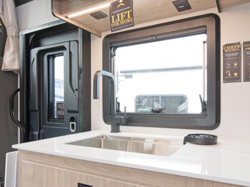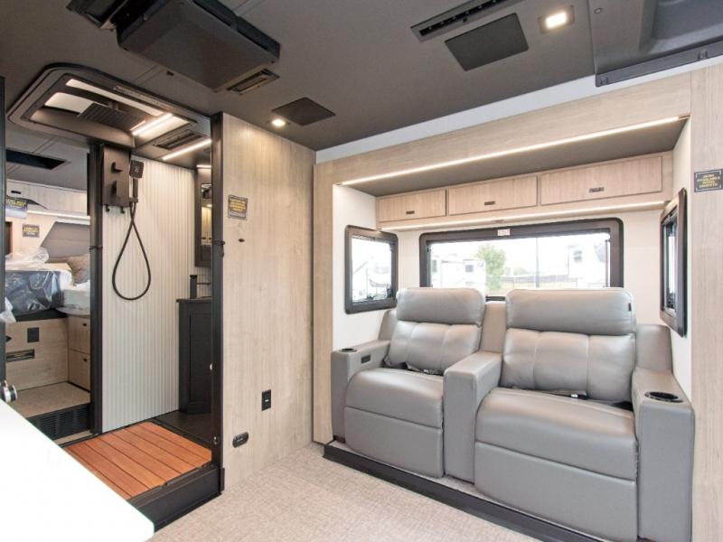 Experience luxury and performance with the Grand Design Lineage 25TK, featuring a spacious king-convertible bed and dual 32” smart TVs for ultimate comfort and entertainment on the road.
