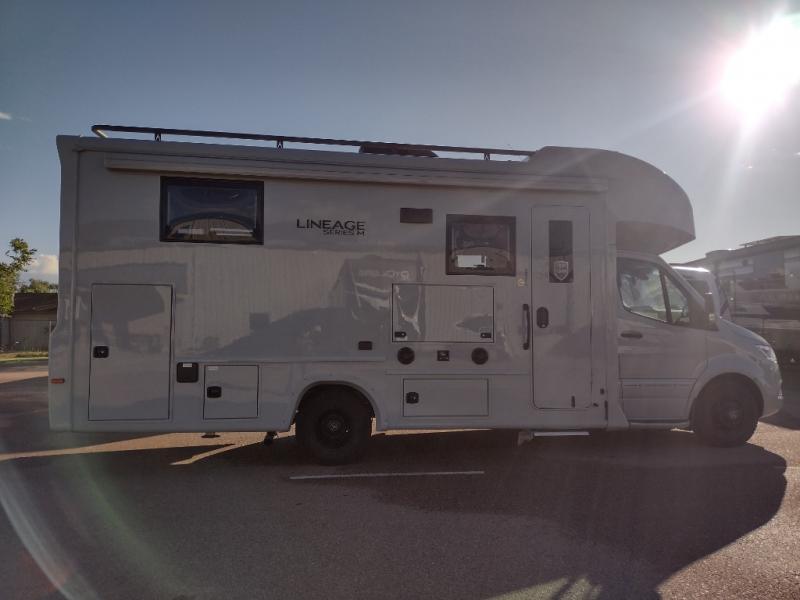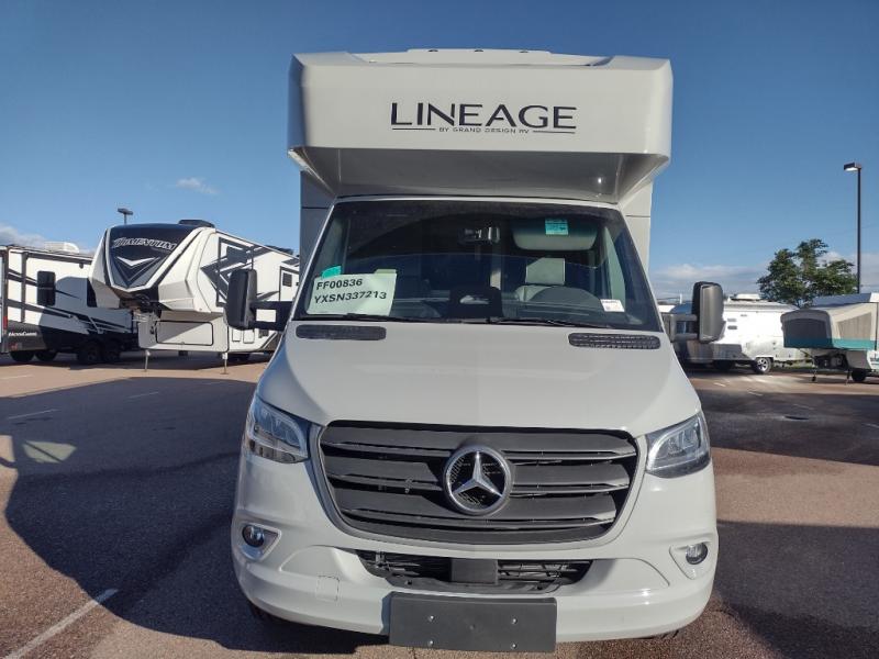 Grand Design's first motorized coach, the Lineage Series M is coming to you with luxurious features at a great value. This Class C diesel motorhome sits on a Mercedes-Benz sprinter chassis for quality and performance you can trust. True to Grand Design's foundation, the Lineage includes interior comforts, durable construction, innovative features, and attention to detail. The Series M Package includes natural teak wood grain, a Lineage Suspension Package, and more. There is also a Blackout Package with black aluminum wheels, a Chromeout Package with chrome aluminum wheels, plus additional packages to enhance your travel experience!