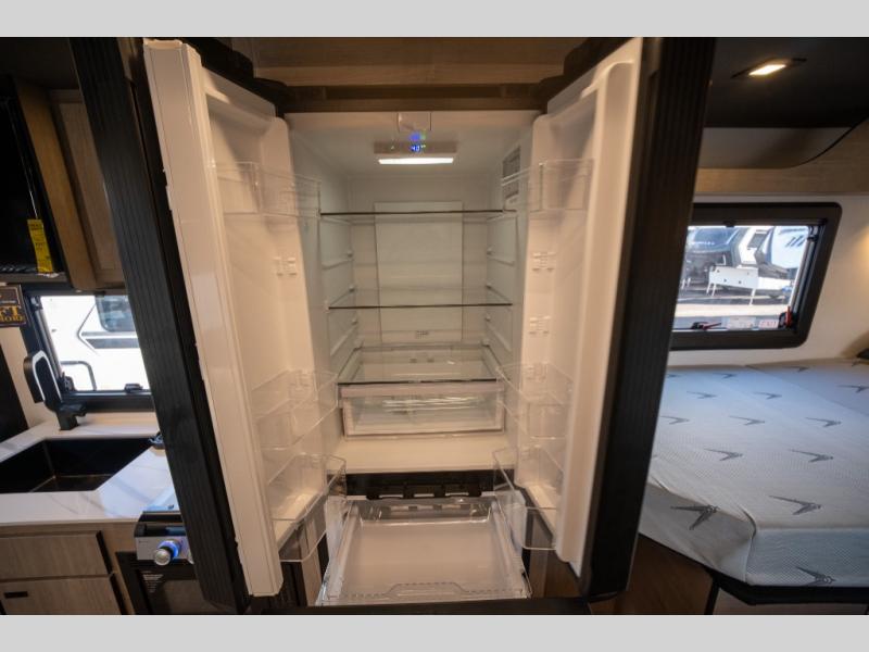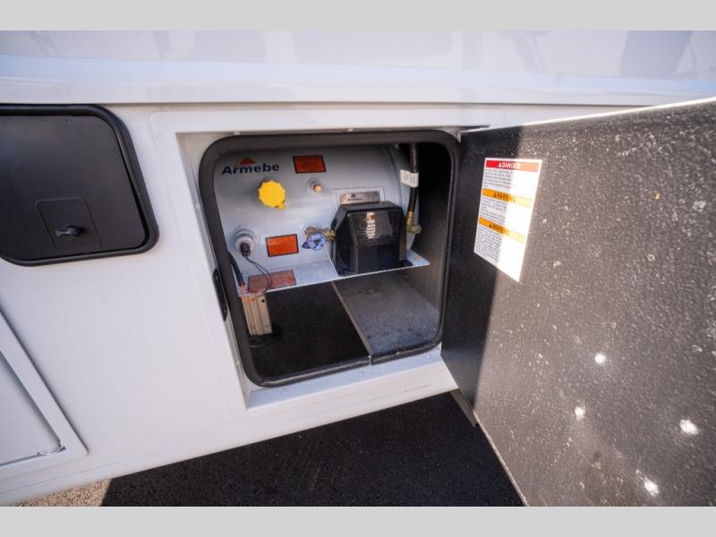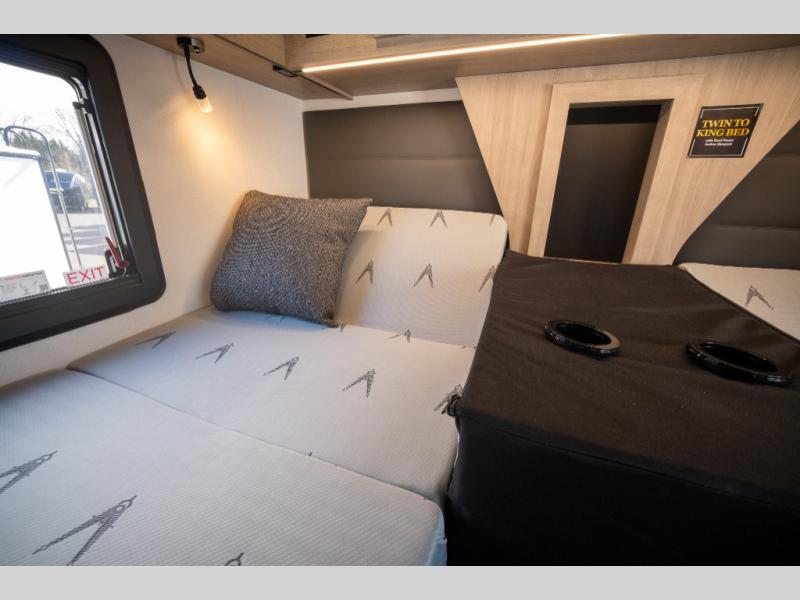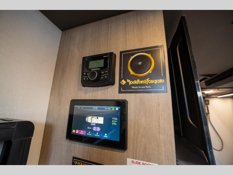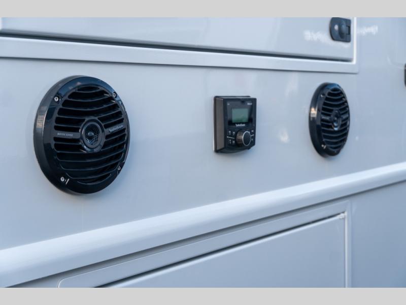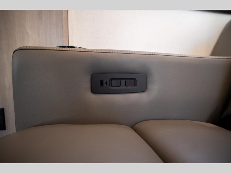 Perfect for couples or families who love to travel in style, this motorhome has everything you wish for in a coach. The rear twin beds convert to a king-sized bed, providing a spacious and comfortable sleeping area for two. The full bathroom is equipped with everything you need for a comfortable stay, providing a convenient spot to freshen up after a long day of exploring. The kitchen is equipped with a 10 cu refrigerator for ample storage, a microwave, and a two-burner cooktop for trying out any trending recipe. In addition, the pantry provides more storage for food and cookware.The 32” smart TVs in the bedroom and living room provide endless entertainment options, while the power seating ensures comfortable viewing angles. The bunk over the cab provides additional sleeping space for kids or adults, and the exterior TV offers an ideal spot to enjoy your favorite shows or sports teams while outdoors.