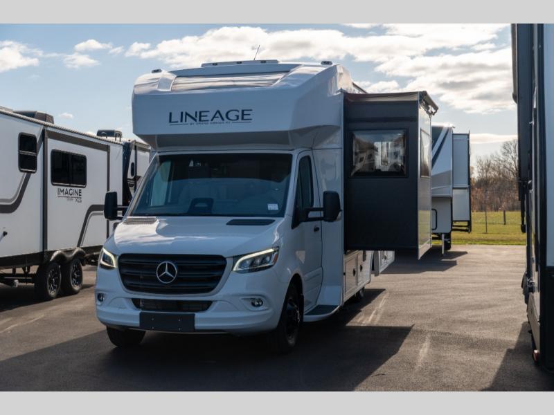 Grand Design's first motorized coach, the Lineage Series M is coming to you with luxurious features at a great value. This Class C diesel motorhome sits on a Mercedes-Benz sprinter chassis for quality and performance you can trust. True to Grand Design's foundation, the Lineage includes interior comforts, durable construction, innovative features, and attention to detail. The Series M Package includes natural teak wood grain, a Lineage Suspension Package, and more. There is also a Blackout Package with black aluminum wheels, a Chromeout Package with chrome aluminum wheels, plus additional packages to enhance your travel experience!