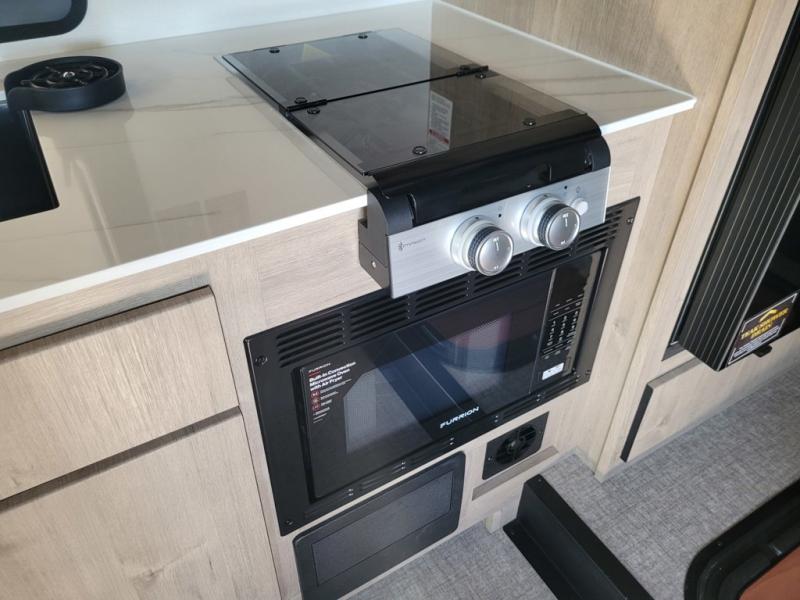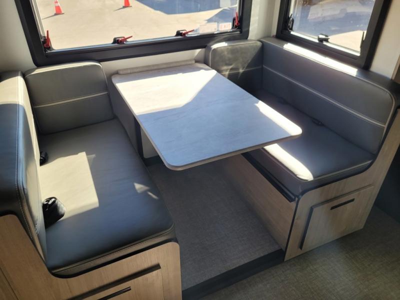 Perfect for couples or families who love to travel in style, this motorhome has everything you wish for in a coach. The rear twin beds convert to a king-sized bed, providing a spacious and comfortable sleeping area for two. The full bathroom is equipped with everything you need for a comfortable stay, providing a convenient spot to freshen up after a long day of exploring. The kitchen is equipped with a 10 cu refrigerator for ample storage, a microwave, and a two-burner cooktop for trying out any trending recipe. In addition, the pantry provides more storage for food and cookware.The 32” smart TVs in the bedroom and living room provide endless entertainment options, while the power seating ensures comfortable viewing angles. The bunk over the cab provides additional sleeping space for kids or adults, and the exterior TV offers an ideal spot to enjoy your favorite shows or sports teams while outdoors.