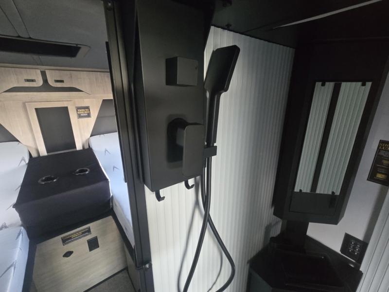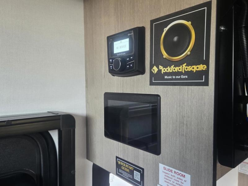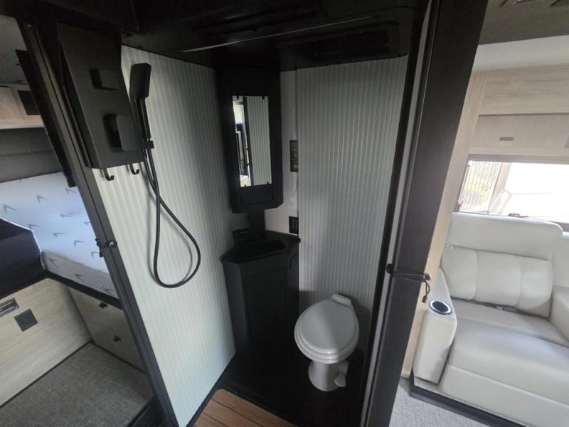 Perfect for couples or families who love to travel in style, this motorhome has everything you wish for in a coach. The rear twin beds convert to a king-sized bed, providing a spacious and comfortable sleeping area for two. The full bathroom is equipped with everything you need for a comfortable stay, providing a convenient spot to freshen up after a long day of exploring. The kitchen is equipped with a 10 cu refrigerator for ample storage, a microwave, and a two-burner cooktop for trying out any trending recipe. In addition, the pantry provides more storage for food and cookware.The 32” smart TVs in the bedroom and living room provide endless entertainment options, while the power seating ensures comfortable viewing angles. The bunk over the cab provides additional sleeping space for kids or adults, and the exterior TV offers an ideal spot to enjoy your favorite shows or sports teams while outdoors.