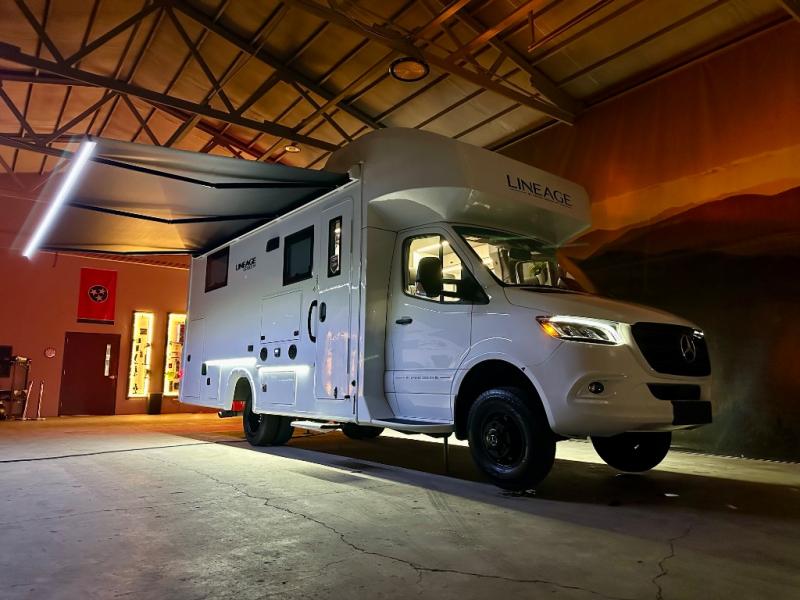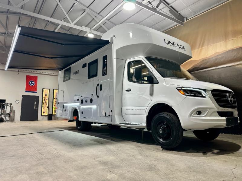 Grand Design's first motorized coach, the Lineage Series M is coming to you with luxurious features at a great value. This Class C diesel motorhome sits on a Mercedes-Benz sprinter chassis for quality and performance you can trust. True to Grand Design's foundation, the Lineage includes interior comforts, durable construction, innovative features, and attention to detail. The Series M Package includes natural teak wood grain, a Lineage Suspension Package, and more. There is also a Blackout Package with black aluminum wheels, a Chromeout Package with chrome aluminum wheels, plus additional packages to enhance your travel experience!