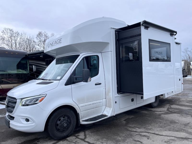 Grand Design's first motorized coach, the Lineage Series M is coming to you with luxurious features at a great value. This Class C diesel motorhome sits on a Mercedes-Benz sprinter chassis for quality and performance you can trust. True to Grand Design's foundation, the Lineage includes interior comforts, durable construction, innovative features, and attention to detail. The Series M Package includes natural teak wood grain, a Lineage Suspension Package, and more. There is also a Blackout Package with black aluminum wheels, a Chromeout Package with chrome aluminum wheels, plus additional packages to enhance your travel experience!