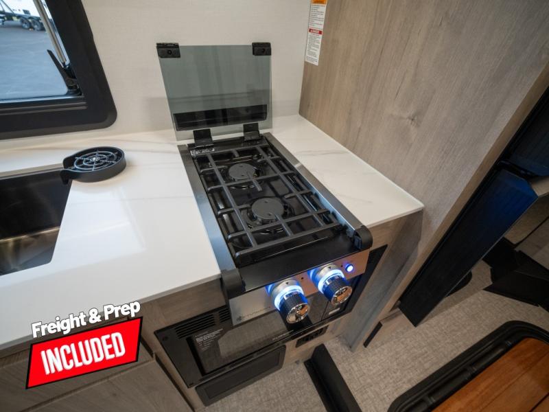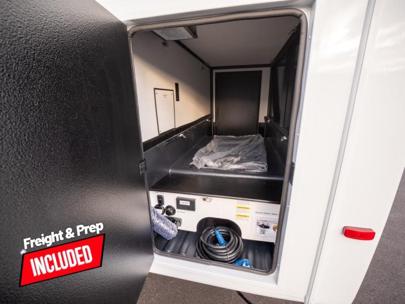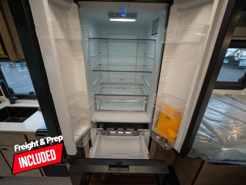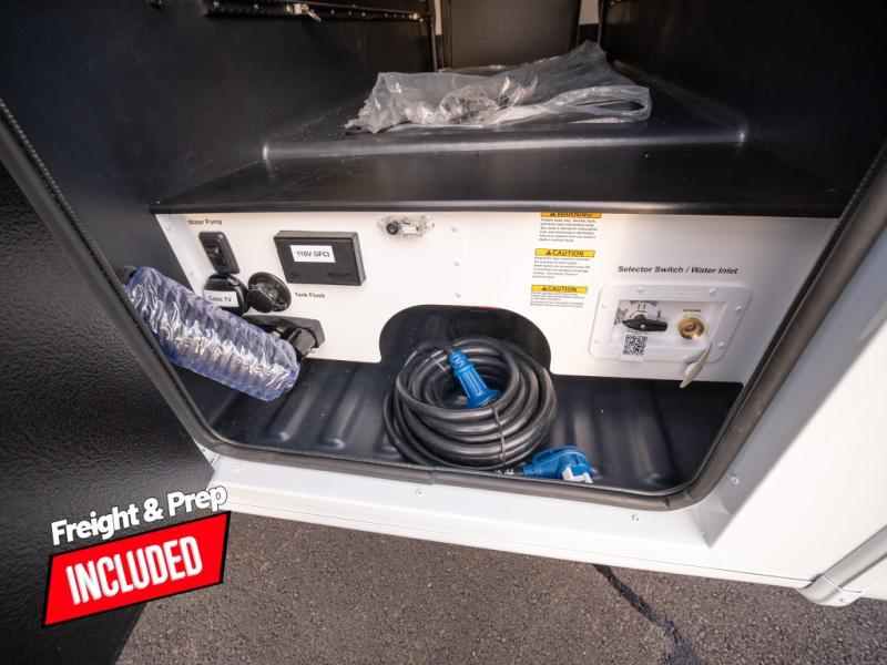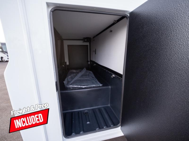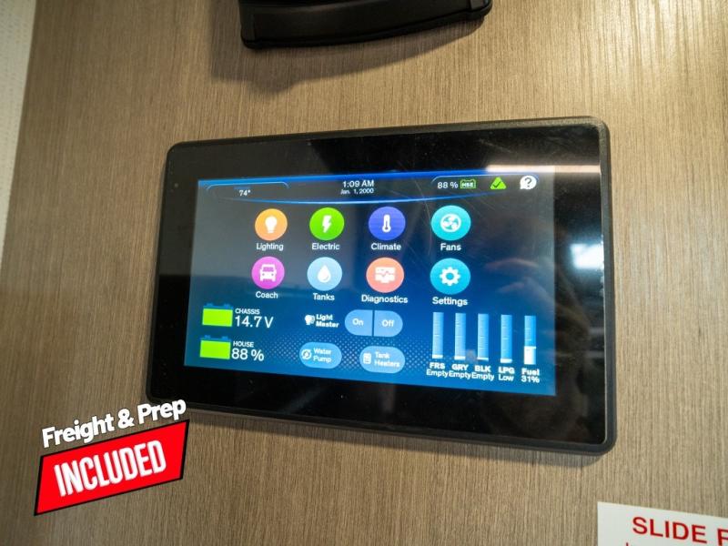 Perfect for couples or families who love to travel in style, this motorhome has everything you wish for in a coach. The rear twin beds convert to a king-sized bed, providing a spacious and comfortable sleeping area for two. The full bathroom is equipped with everything you need for a comfortable stay, providing a convenient spot to freshen up after a long day of exploring. The kitchen is equipped with a 10 cu refrigerator for ample storage, a microwave, and a two-burner cooktop for trying out any trending recipe. In addition, the pantry provides more storage for food and cookware.The 32” smart TVs in the bedroom and living room provide endless entertainment options, while the power seating ensures comfortable viewing angles. The bunk over the cab provides additional sleeping space for kids or adults, and the exterior TV offers an ideal spot to enjoy your favorite shows or sports teams while outdoors.