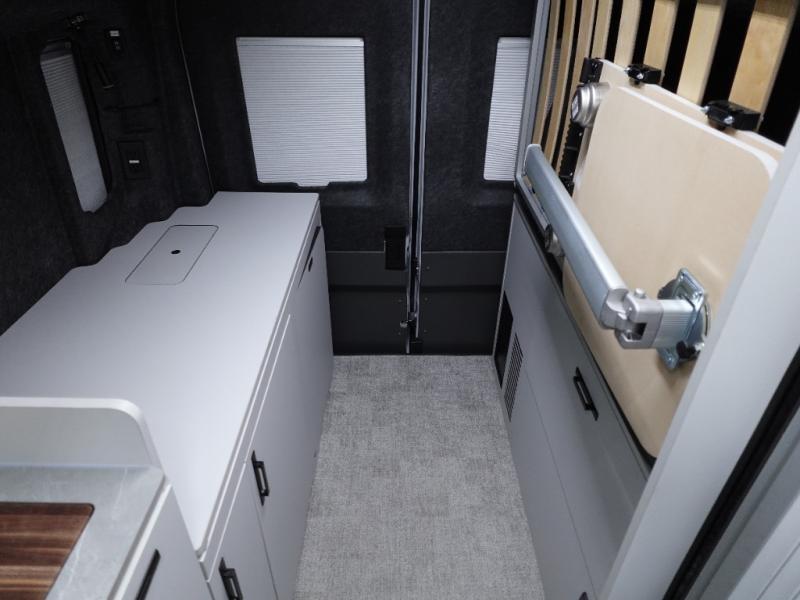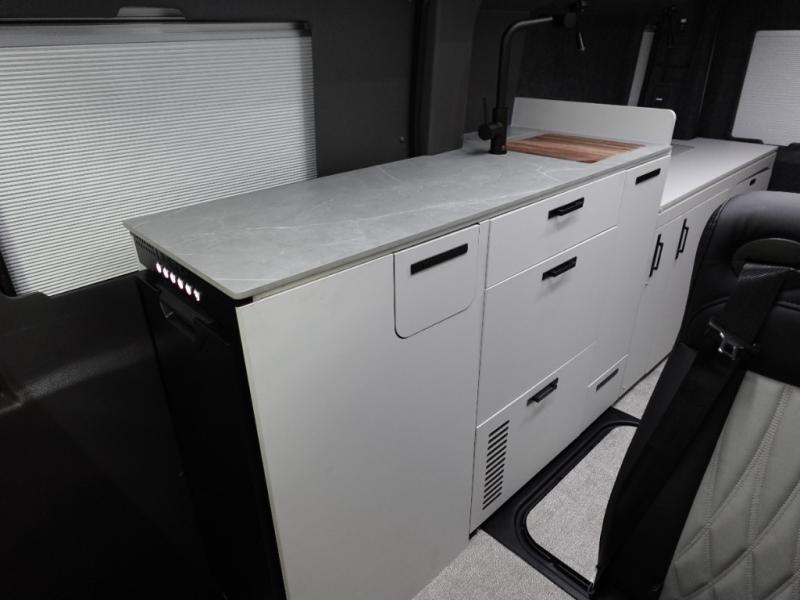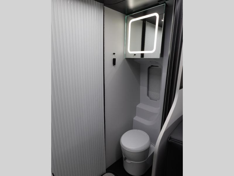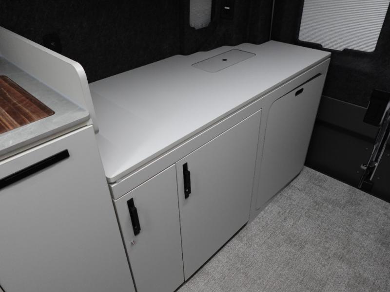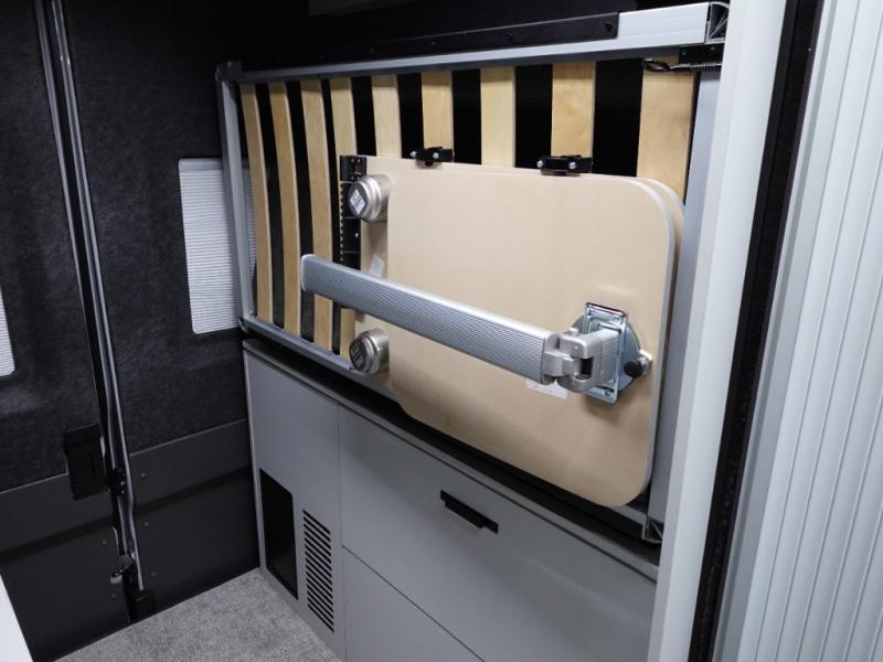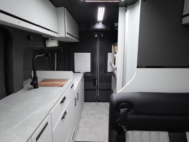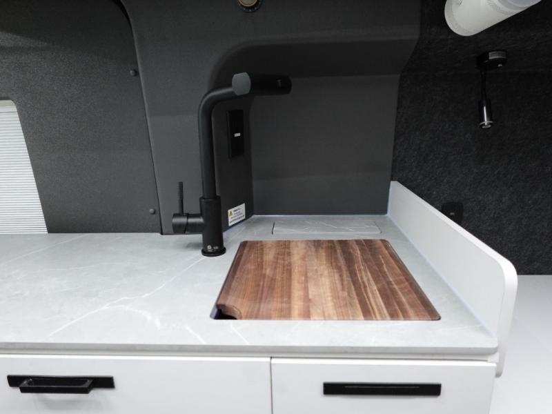 This luxury motorhome for the modern adventurer will be your favorite! The flip-up bed provides a comfortable sleeping area, perfect for restful nights on the road. The entertainment spot is provided in the motorized projector screen, which is ideal for movie nights, sporting events, or presentations, making it a great way to unwind or entertain friends and family. The bathroom provides a private and convenient space for personal needs, and the kitchen features an undermount cooktop, perfect for preparing your favorite meals, 3.2 cu. ft. refrigerator for keeping perishables fresh, and a sink for easy cleanup. The exterior awning provides shade and protection from the elements, while the sliding door offers easy access and added convenience.