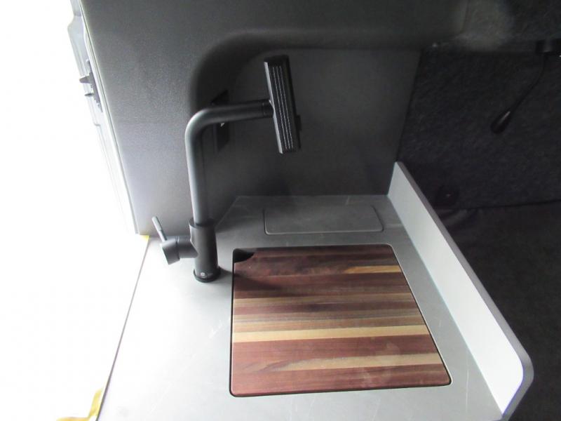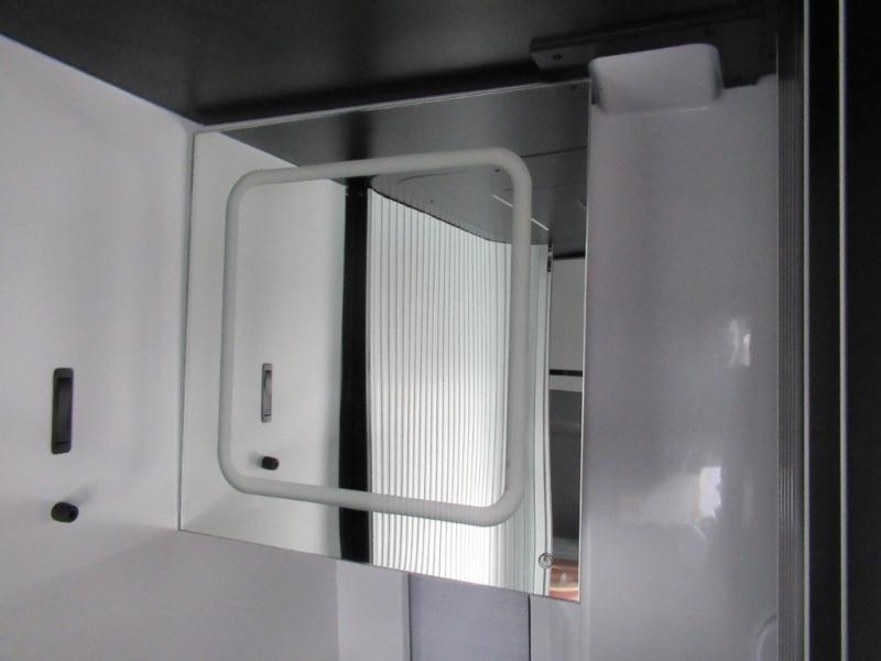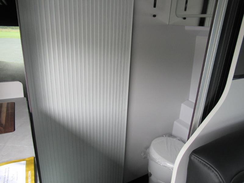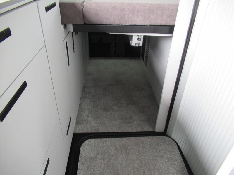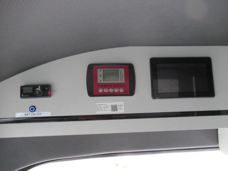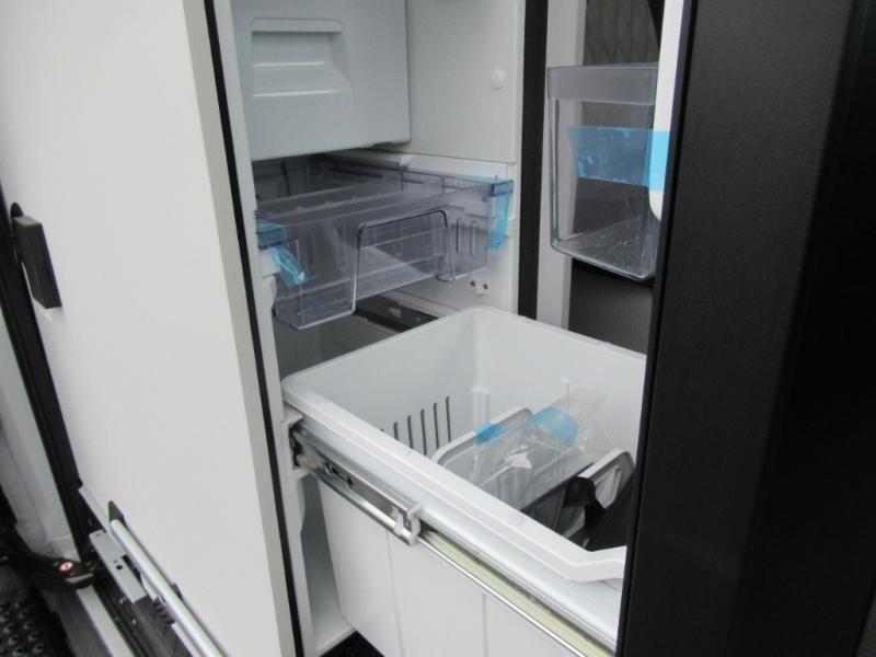 This luxury motorhome for the modern adventurer will be your favorite! The flip-up bed provides a comfortable sleeping area, perfect for restful nights on the road. The entertainment spot is provided in the motorized projector screen, which is ideal for movie nights, sporting events, or presentations, making it a great way to unwind or entertain friends and family. The bathroom provides a private and convenient space for personal needs, and the kitchen features an undermount cooktop, perfect for preparing your favorite meals, 3.2 cu. ft. refrigerator for keeping perishables fresh, and a sink for easy cleanup. The exterior awning provides shade and protection from the elements, while the sliding door offers easy access and added convenience.