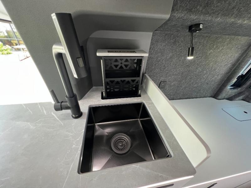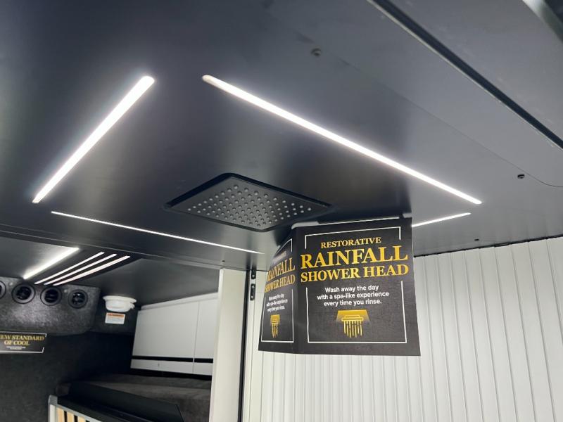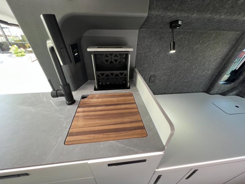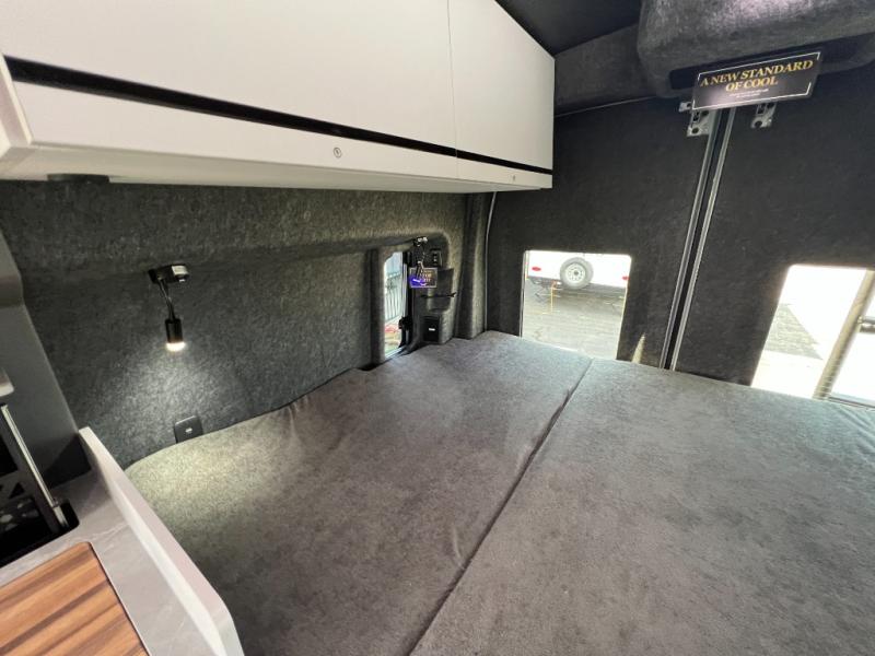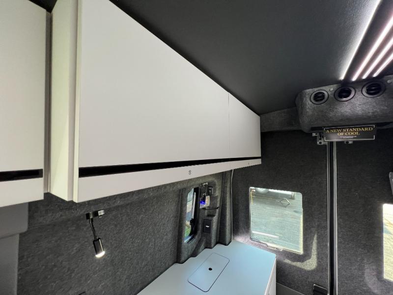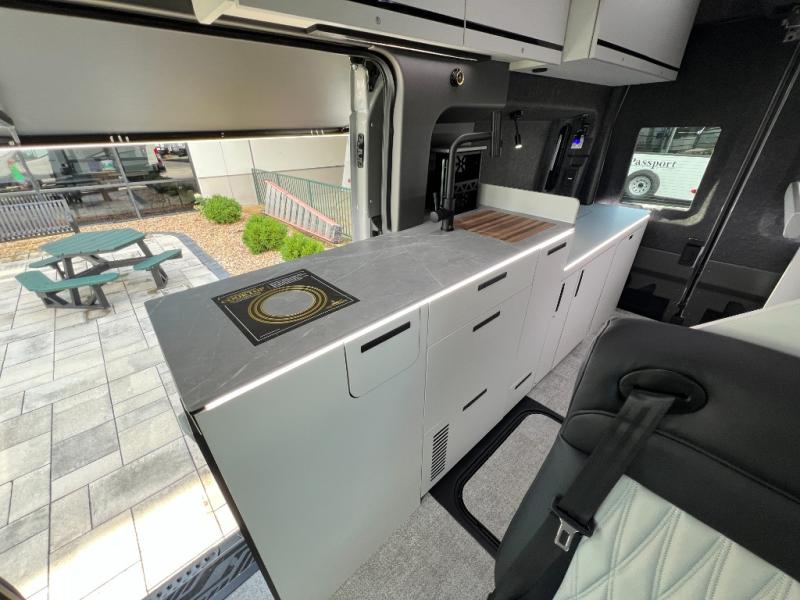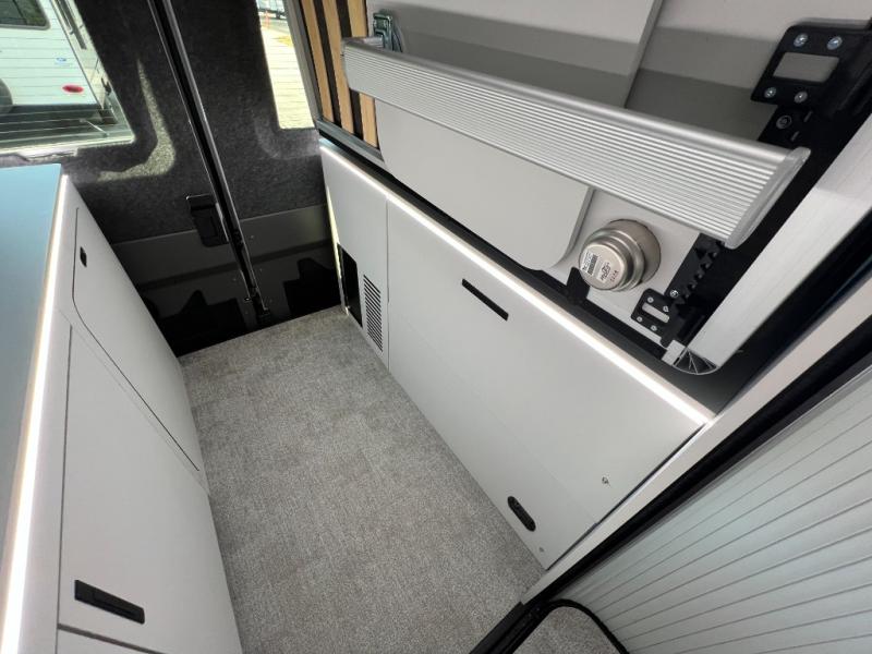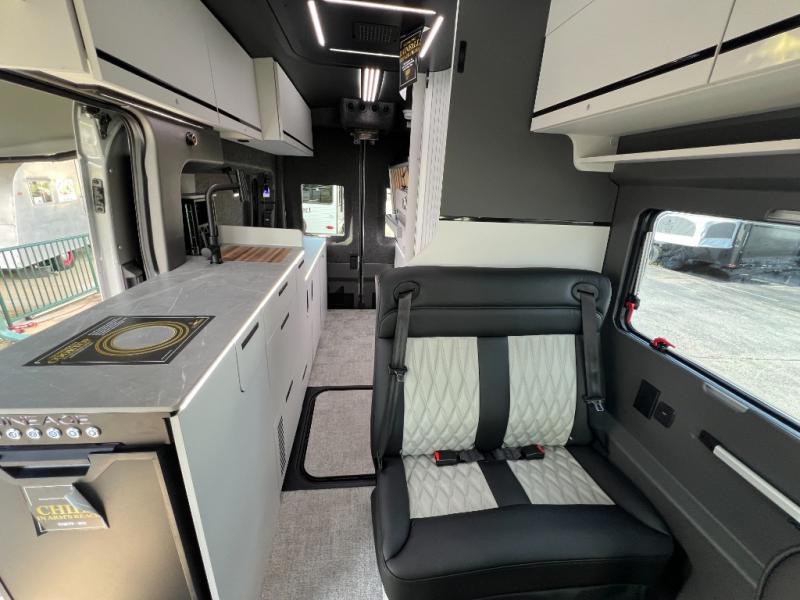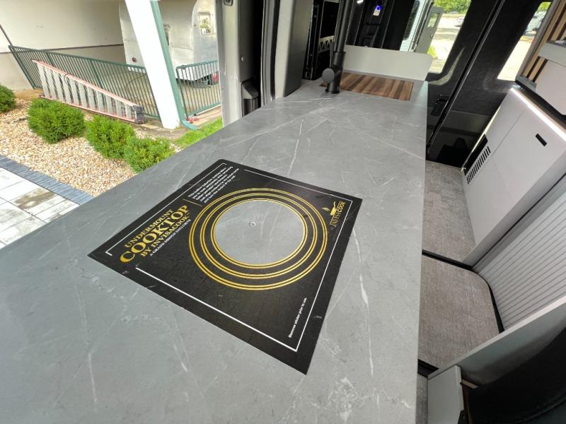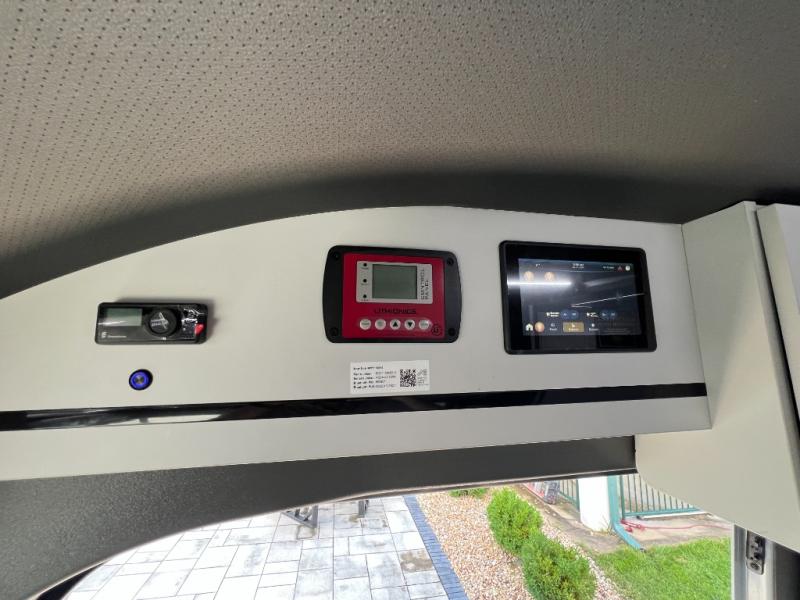 This luxury motorhome for the modern adventurer will be your favorite! The flip-up bed provides a comfortable sleeping area, perfect for restful nights on the road. The entertainment spot is provided in the motorized projector screen, which is ideal for movie nights, sporting events, or presentations, making it a great way to unwind or entertain friends and family. The bathroom provides a private and convenient space for personal needs, and the kitchen features an undermount cooktop, perfect for preparing your favorite meals, 3.2 cu. ft. refrigerator for keeping perishables fresh, and a sink for easy cleanup. The exterior awning provides shade and protection from the elements, while the sliding door offers easy access and added convenience.