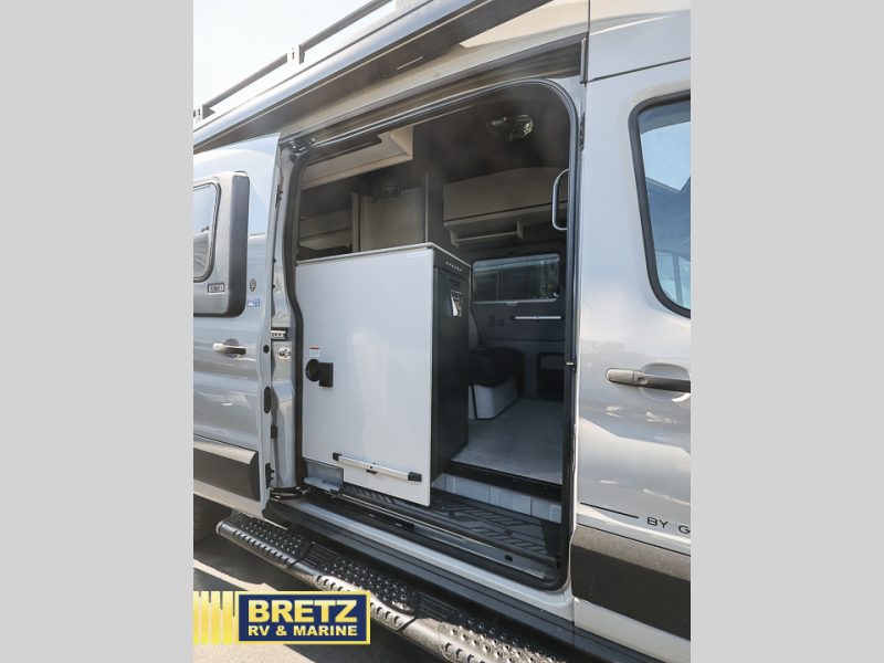 This luxury motorhome for the modern adventurer will be your favorite! The flip-up bed provides a comfortable sleeping area, perfect for restful nights on the road. The entertainment spot is provided in the motorized projector screen, which is ideal for movie nights, sporting events, or presentations, making it a great way to unwind or entertain friends and family. The bathroom provides a private and convenient space for personal needs, and the kitchen features an undermount cooktop, perfect for preparing your favorite meals, 3.2 cu. ft. refrigerator for keeping perishables fresh, and a sink for easy cleanup. The exterior awning provides shade and protection from the elements, while the sliding door offers easy access and added convenience.