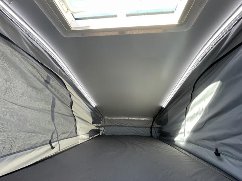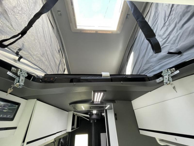 The thoughtfully designed floorplan includes a flip-up rear bed for a cozy night's sleep and flexible use of space. Need room for gear or extra storage during the day? Simply fold the bed up and take full advantage of the open interior.