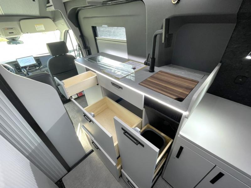 Skip the public rest stops and enjoy the privacy of your own convenient wet bath, designed with efficiency and comfort in mind. Everything you need is right at your fingertips, making off-grid living easier than ever.