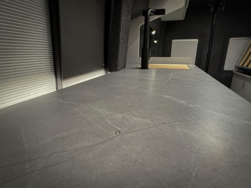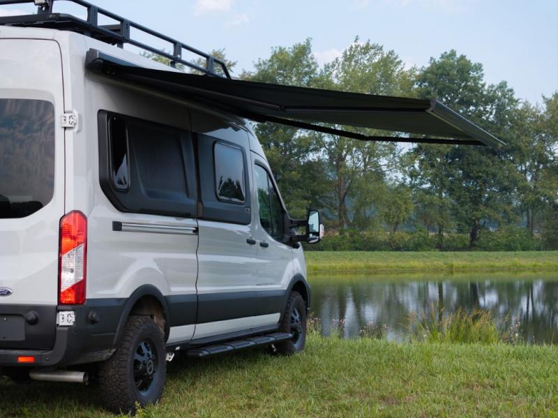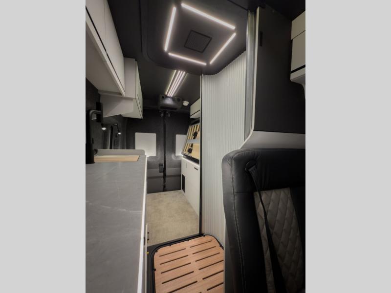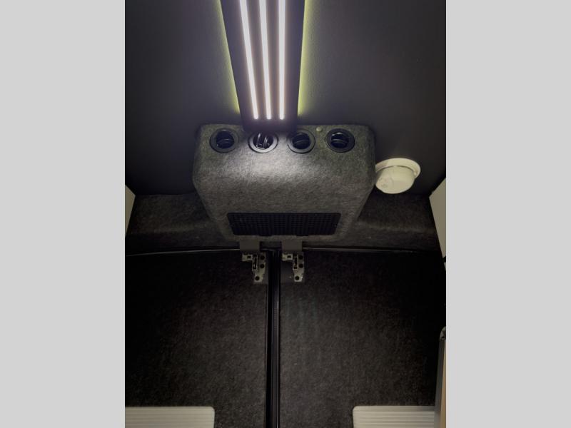 This luxury motorhome for the modern adventurer will be your favorite! The flip-up bed provides a comfortable sleeping area, perfect for restful nights on the road. The entertainment spot is provided in the motorized projector screen, which is ideal for movie nights, sporting events, or presentations, making it a great way to unwind or entertain friends and family. The bathroom provides a private and convenient space for personal needs, and the kitchen features an undermount cooktop, perfect for preparing your favorite meals, 3.2 cu. ft. refrigerator for keeping perishables fresh, and a sink for easy cleanup. The exterior awning provides shade and protection from the elements, while the sliding door offers easy access and added convenience.