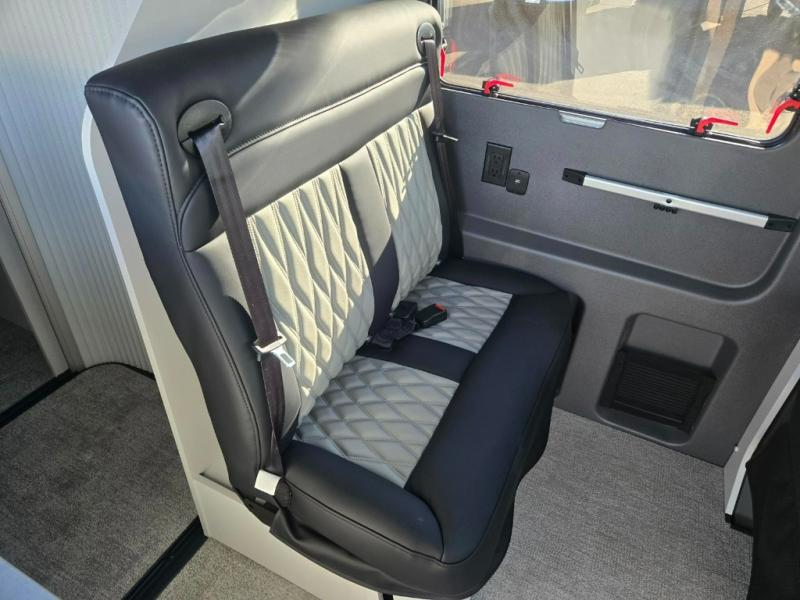 This luxury motorhome for the modern adventurer will be your favorite! The flip-up bed provides a comfortable sleeping area, perfect for restful nights on the road. The entertainment spot is provided in the motorized projector screen, which is ideal for movie nights, sporting events, or presentations, making it a great way to unwind or entertain friends and family. The bathroom provides a private and convenient space for personal needs, and the kitchen features an undermount cooktop, perfect for preparing your favorite meals, 3.2 cu. ft. refrigerator for keeping perishables fresh, and a sink for easy cleanup. The exterior awning provides shade and protection from the elements, while the sliding door offers easy access and added convenience.