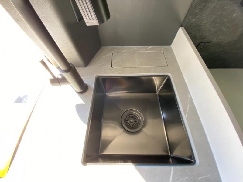 This luxury motorhome for the modern adventurer will be your favorite! The flip-up bed provides a comfortable sleeping area, perfect for restful nights on the road. The entertainment spot is provided in the motorized projector screen, which is ideal for movie nights, sporting events, or presentations, making it a great way to unwind or entertain friends and family. The bathroom provides a private and convenient space for personal needs, and the kitchen features an undermount cooktop, perfect for preparing your favorite meals, 3.2 cu. ft. refrigerator for keeping perishables fresh, and a sink for easy cleanup. The exterior awning provides shade and protection from the elements, while the sliding door offers easy access and added convenience.