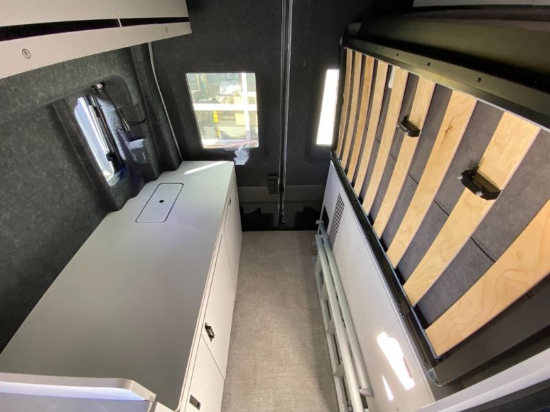 This luxury motorhome for the modern adventurer will be your favorite! The flip-up bed provides a comfortable sleeping area, perfect for restful nights on the road. The entertainment spot is provided in the motorized projector screen, which is ideal for movie nights, sporting events, or presentations, making it a great way to unwind or entertain friends and family. The bathroom provides a private and convenient space for personal needs, and the kitchen features an undermount cooktop, perfect for preparing your favorite meals, 3.2 cu. ft. refrigerator for keeping perishables fresh, and a sink for easy cleanup. The exterior awning provides shade and protection from the elements, while the sliding door offers easy access and added convenience.