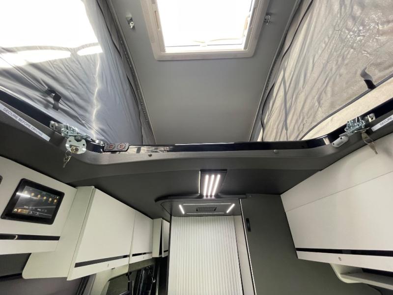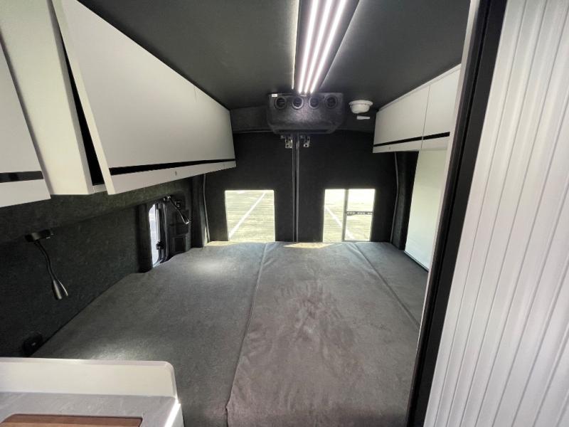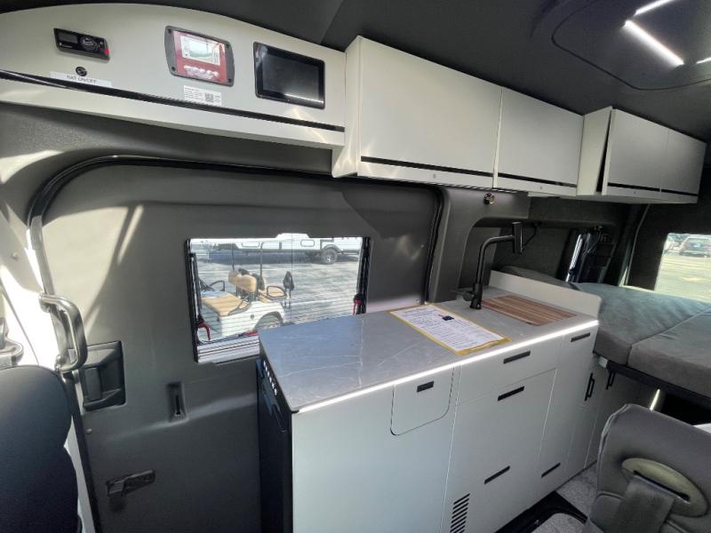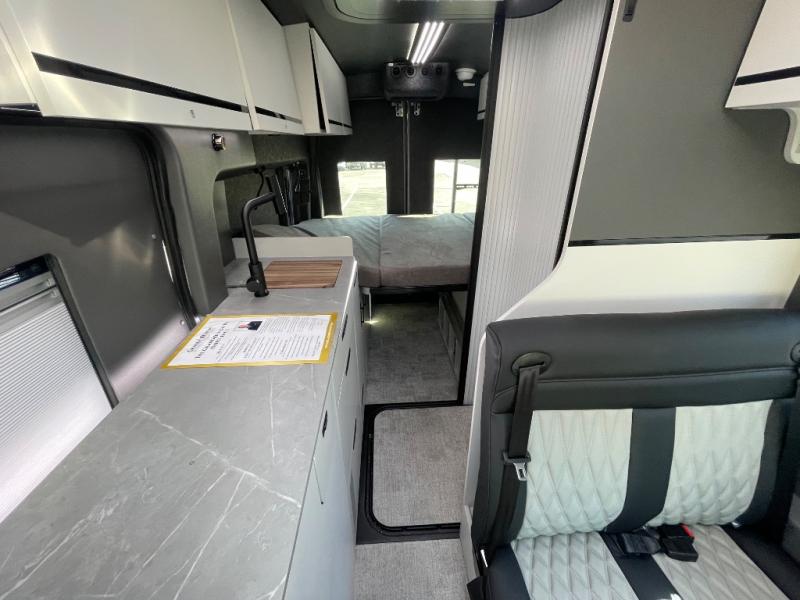 This luxury motorhome for the modern adventurer will be your favorite! The flip-up bed provides a comfortable sleeping area, perfect for restful nights on the road. The entertainment spot is provided in the motorized projector screen, which is ideal for movie nights, sporting events, or presentations, making it a great way to unwind or entertain friends and family. The bathroom provides a private and convenient space for personal needs, and the kitchen features an undermount cooktop, perfect for preparing your favorite meals, 3.2 cu. ft. refrigerator for keeping perishables fresh, and a sink for easy cleanup. The exterior awning provides shade and protection from the elements, while the sliding door offers easy access and added convenience.