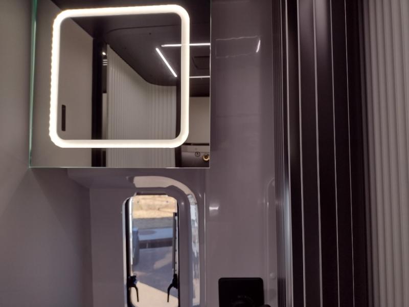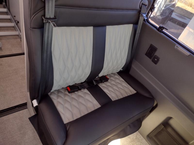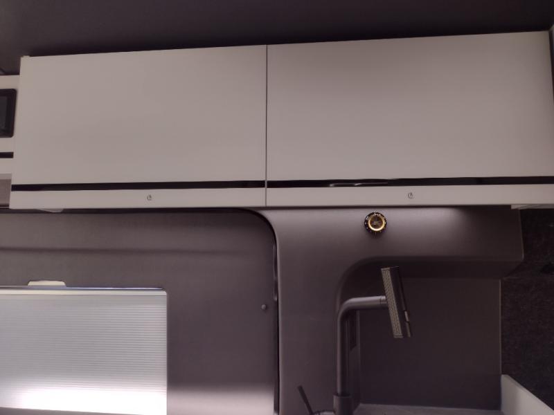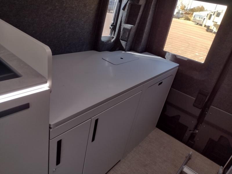 This luxury motorhome for the modern adventurer will be your favorite! The flip-up bed provides a comfortable sleeping area, perfect for restful nights on the road. The entertainment spot is provided in the motorized projector screen, which is ideal for movie nights, sporting events, or presentations, making it a great way to unwind or entertain friends and family. The bathroom provides a private and convenient space for personal needs, and the kitchen features an undermount cooktop, perfect for preparing your favorite meals, 3.2 cu. ft. refrigerator for keeping perishables fresh, and a sink for easy cleanup. The exterior awning provides shade and protection from the elements, while the sliding door offers easy access and added convenience.