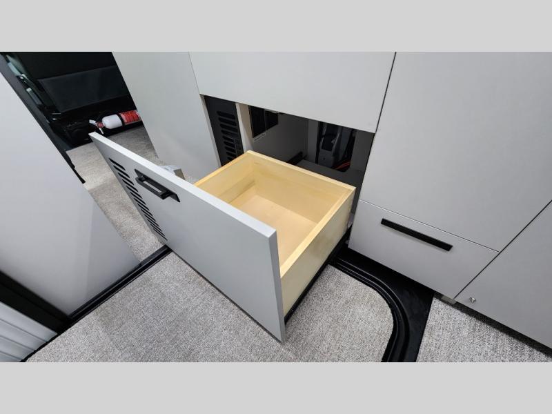 Step inside, and you’ll immediately feel the craftsmanship Grand Design is known for. The flip-up rear bed maximizes storage, while the convertible dinette area offers flexibility for dining, working, or lounging. High-end materials, LED lighting, and clean modern finishes make every inch feel like home.