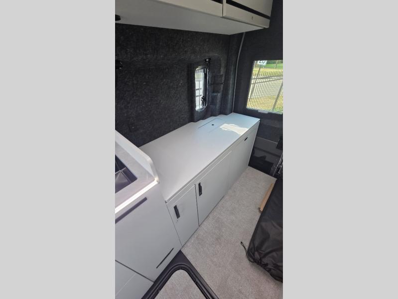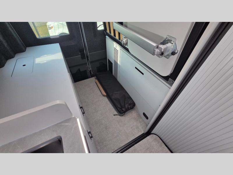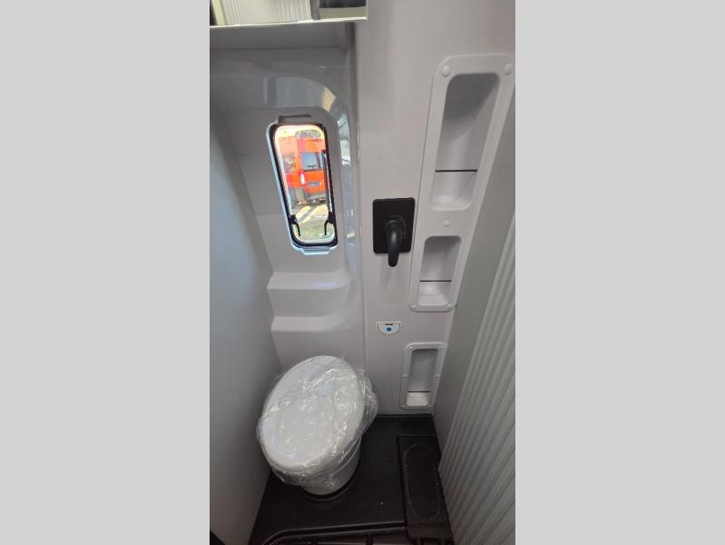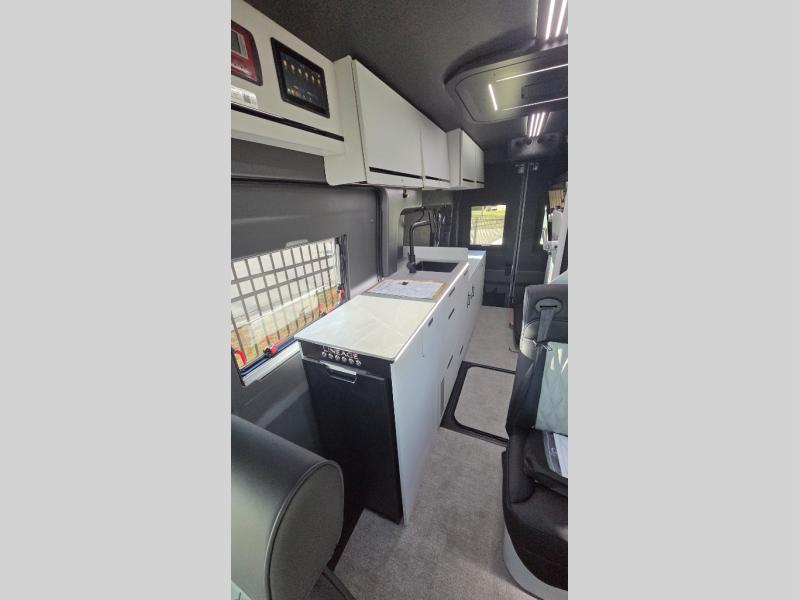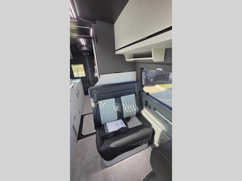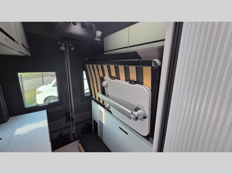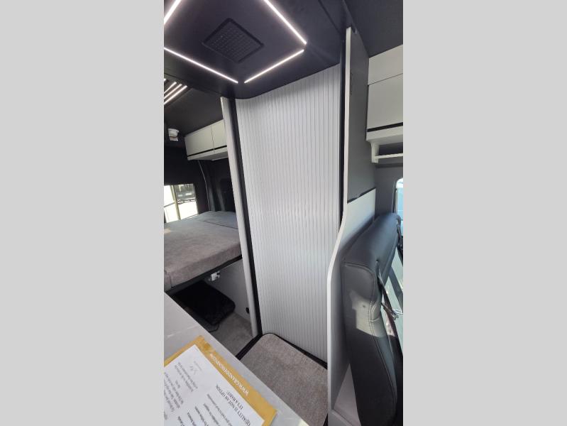 This luxury motorhome for the modern adventurer will be your favorite! The flip-up bed provides a comfortable sleeping area, perfect for restful nights on the road. The entertainment spot is provided in the motorized projector screen, which is ideal for movie nights, sporting events, or presentations, making it a great way to unwind or entertain friends and family. The bathroom provides a private and convenient space for personal needs, and the kitchen features an undermount cooktop, perfect for preparing your favorite meals, 3.2 cu. ft. refrigerator for keeping perishables fresh, and a sink for easy cleanup. The exterior awning provides shade and protection from the elements, while the sliding door offers easy access and added convenience.